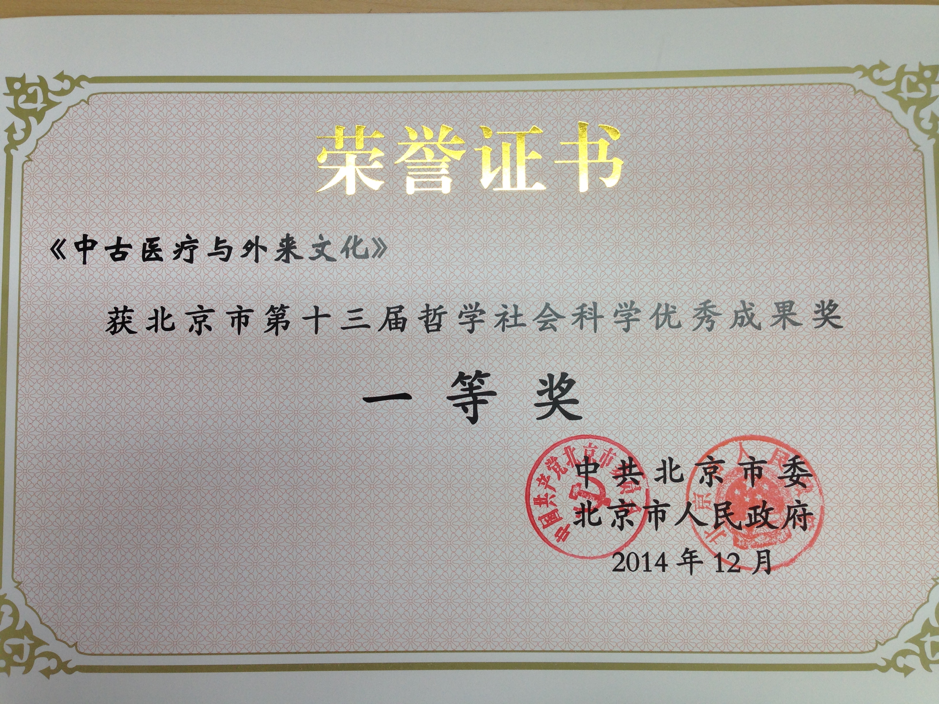 北京市12届哲学社会科学优秀成果奖(唐孟生 一等奖、林丰民 二等奖、周小仪 二等奖),获奖时间为2012年10月。