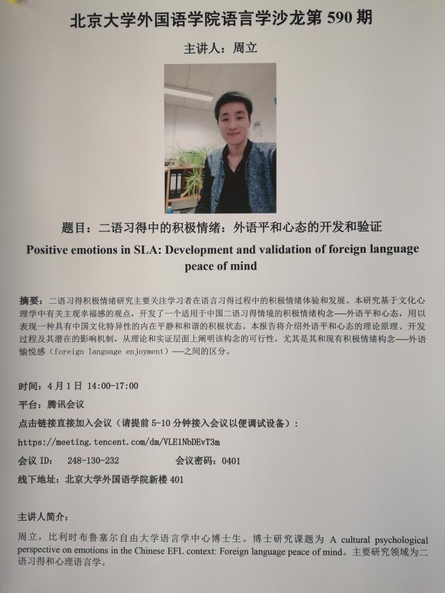 乐动在线中国官方网站语言学沙龙第590期 二语习得中的积极情绪:外语平和心态的开发和验证
