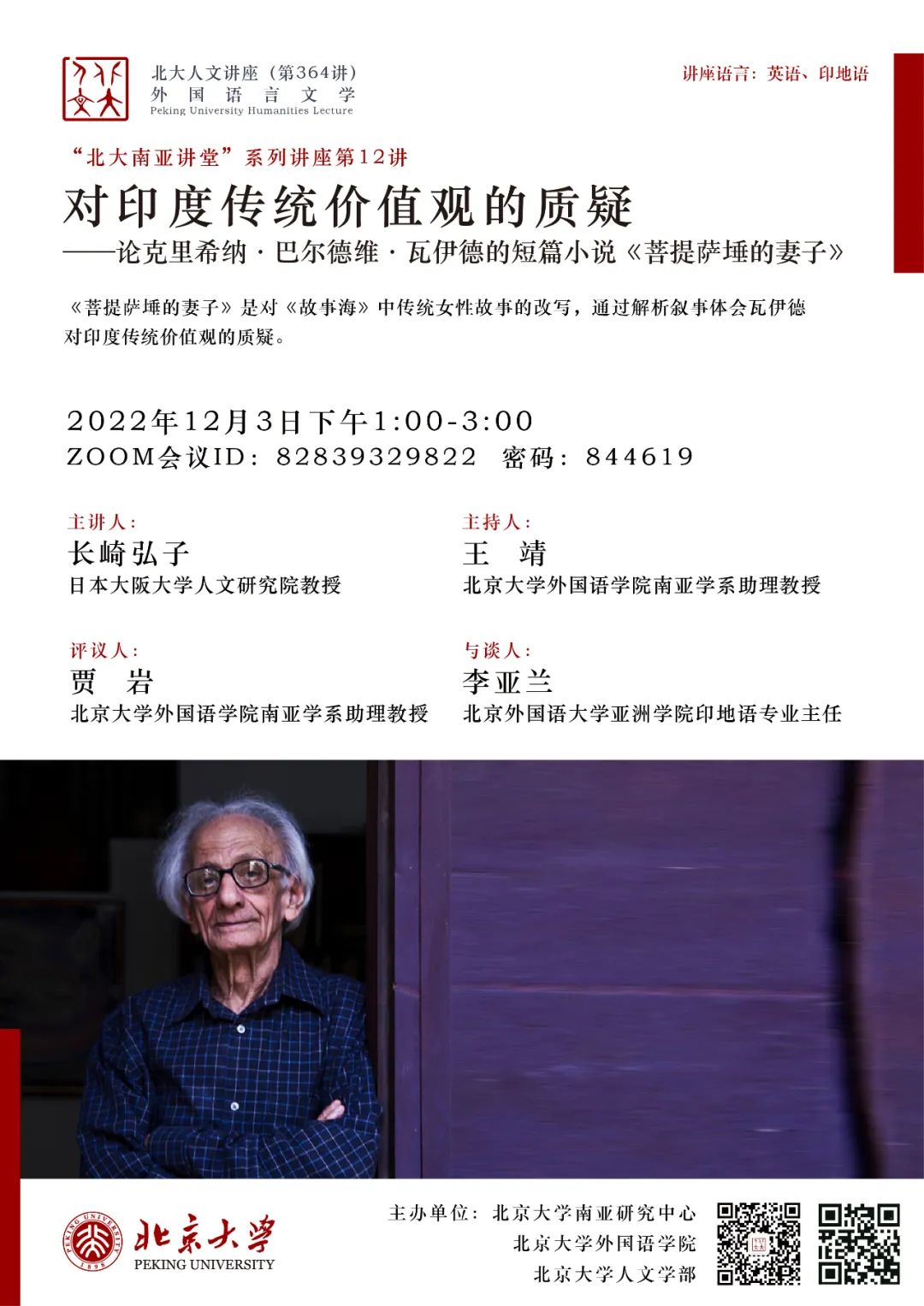 日本大阪大学人文研究院长崎弘子教授讲座预告:对印度传统价值观的质疑