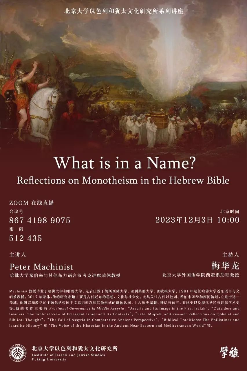 北京大学以色列和犹太文化研究所系列讲座:名字代表什么?关于希伯来圣经中一神教概念的思考