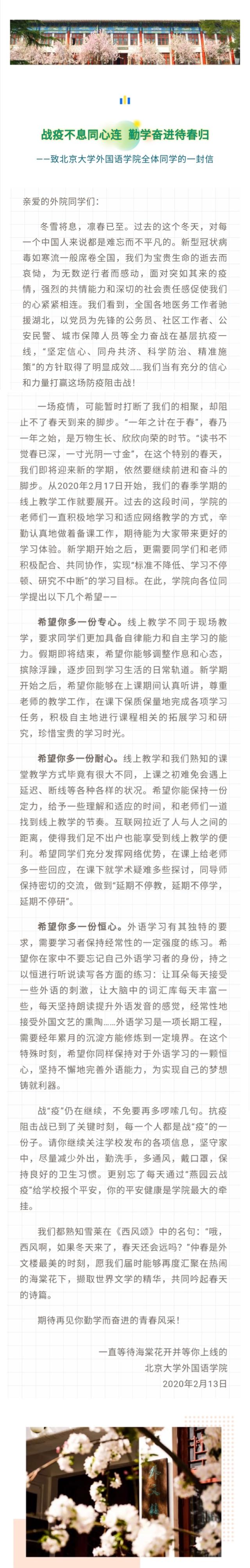 战役不息同心连,勤学奋进待春归