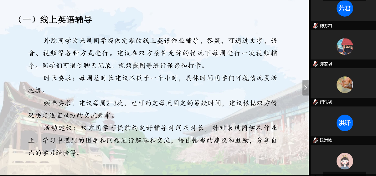 外国语学院与湖北省恩施州来凤县共同举行“千言万语同学习,燕园来凤共成长”线上陪伴活动启动仪式暨志愿者培训会