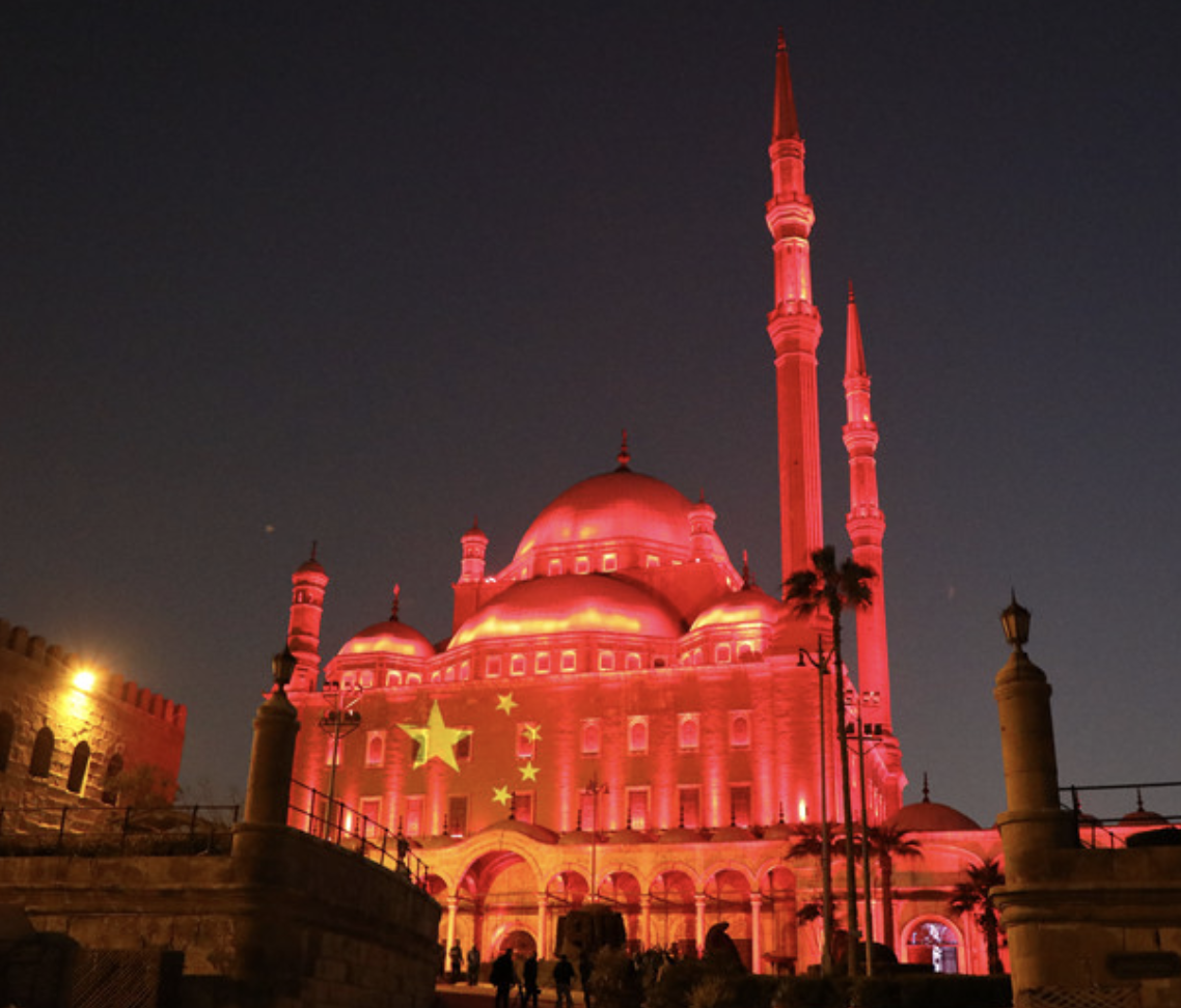 埃及、卡塔尔、阿拉伯联合酋长国、沙特阿拉伯王国向中国提供医疗物资等援助。埃及在本国世界文化遗产地标开罗的萨拉丁城堡上用灯光秀打出了鲜艳的五星红旗,在古代埃及首都卢克索的两座神庙亮起了中国红的灯光秀。阿联酋迪拜的地标性建筑哈利法塔、帆船酒店和其它多个建筑为英勇抗疫的中国特别是武汉亮起鲜红的五星红旗,打出巨幅的“武汉加油”“天涯若比邻”的字样,闪耀在繁华迪拜的夜空中。苏丹、突尼斯等国的孔子学院和中文系学生则用汉语为抗疫重大中国加油,为武汉加油。