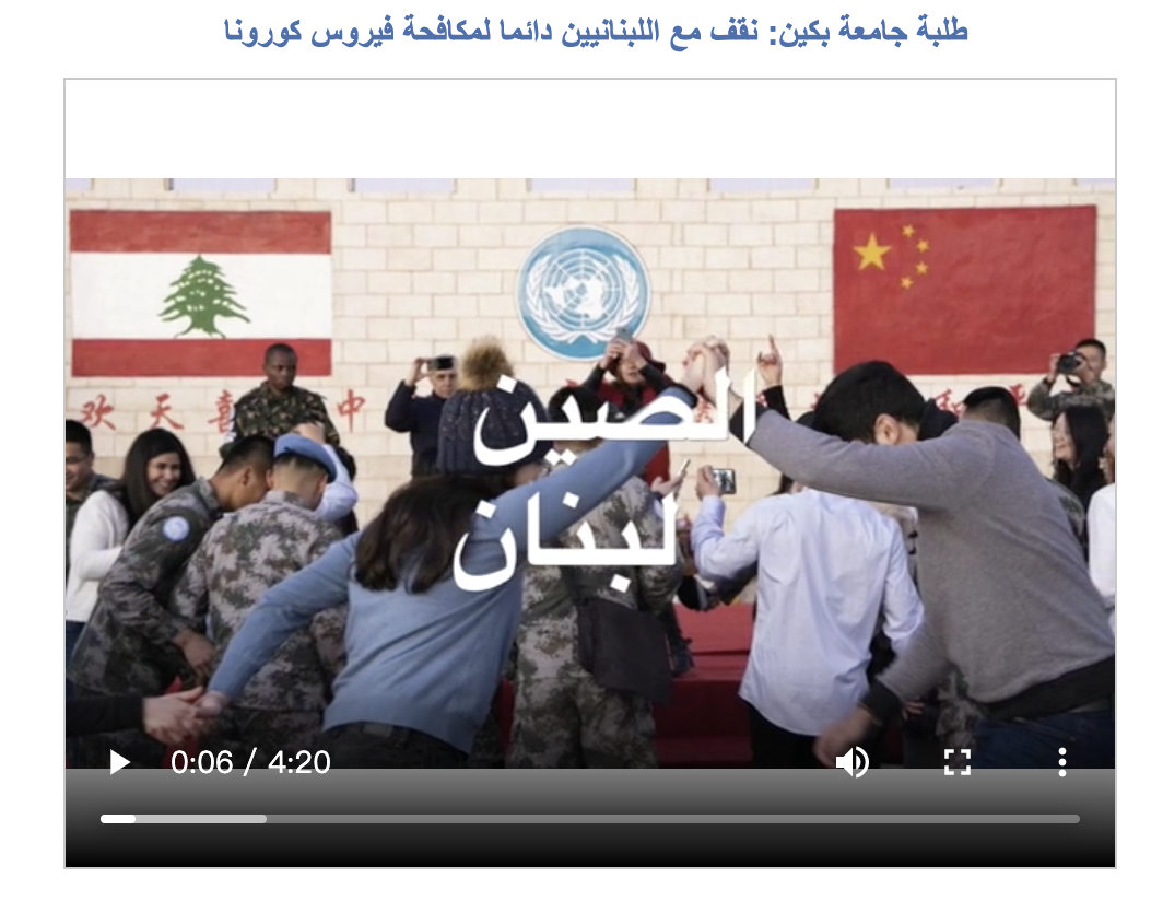 2020年5月6日,在北京大学举办的抗疫资料汇编(阿拉伯文版)视频发布会上,播放了一段由北大学生用阿拉伯语录制的祝福视频,格外引人注目。这段视频是阿拉伯语系师生为阿拉伯国家录制的系列祝福视频的其中一段。近期,在阿拉伯语系老师的指导下,身处世界各地的北大阿拉伯语系学生远程协作录制剪辑完成一批祝福视频,表达了北大师生支持阿拉伯国家抗击疫情的真挚感情。