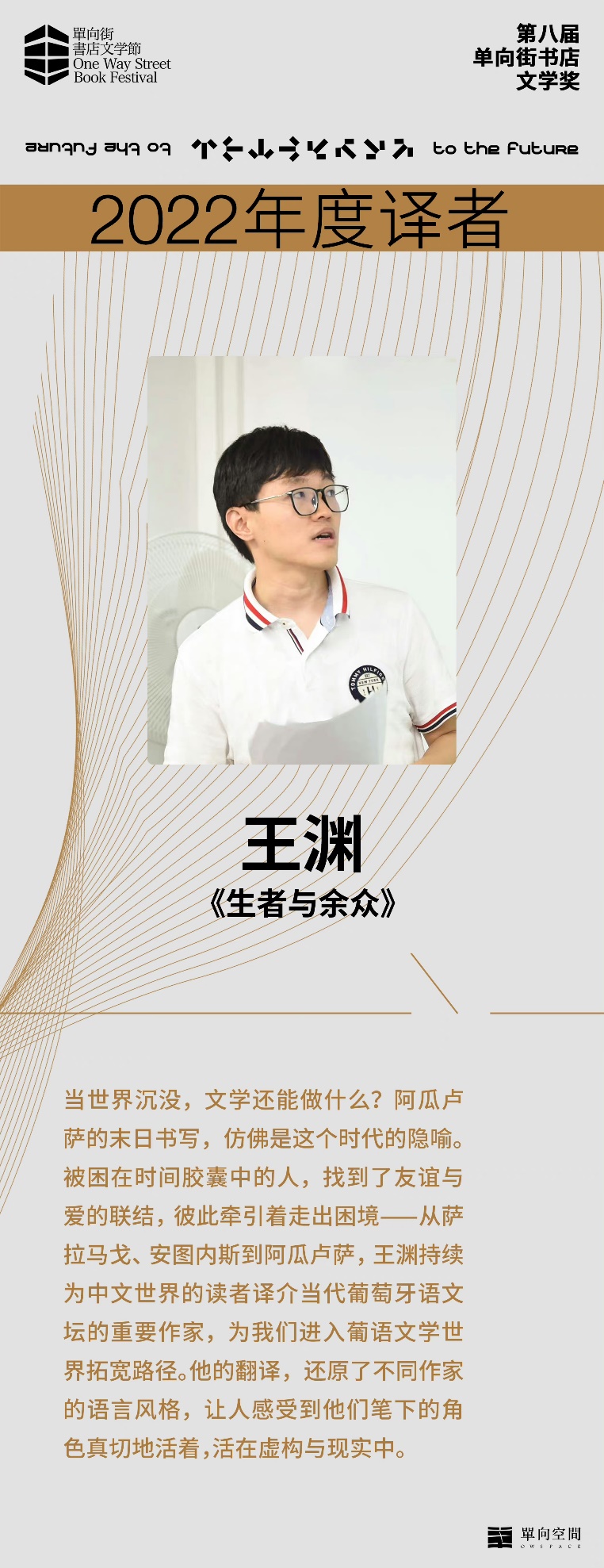 2023年3月25日,第八届单向街书店文学奖揭晓。乐动在线中国官方网站王渊老师荣获2022年度译者,以表彰他对葡语文学译介及推广所做出的贡献。