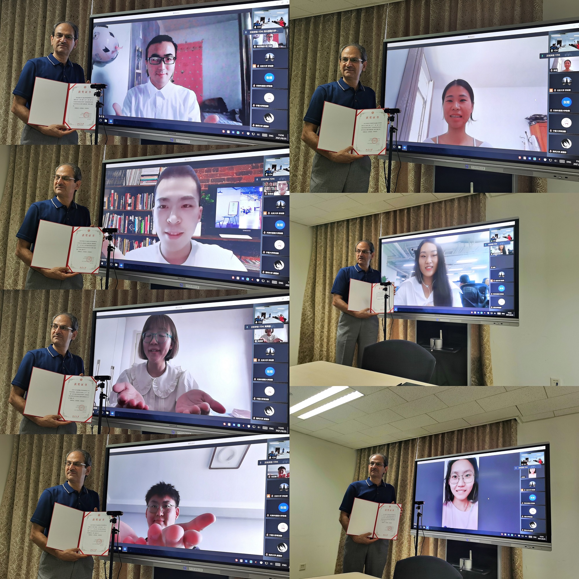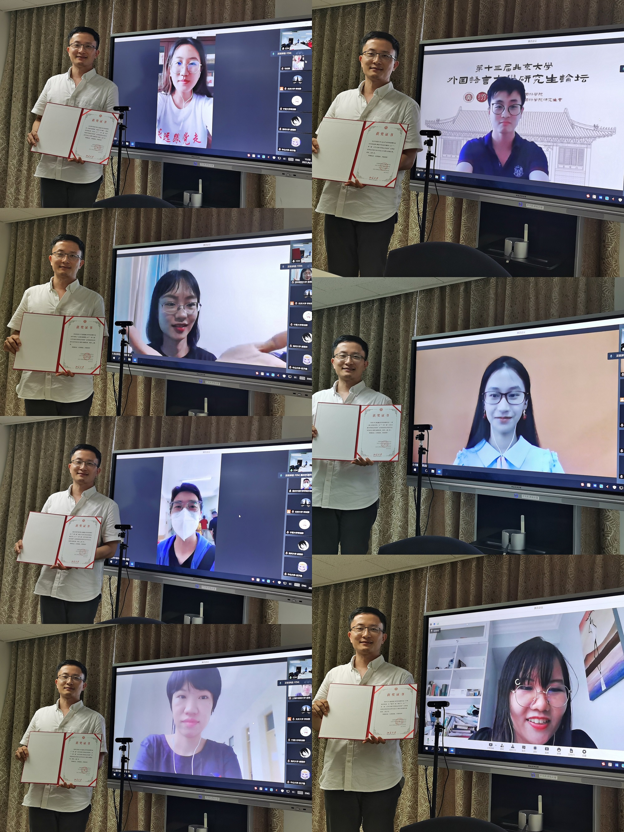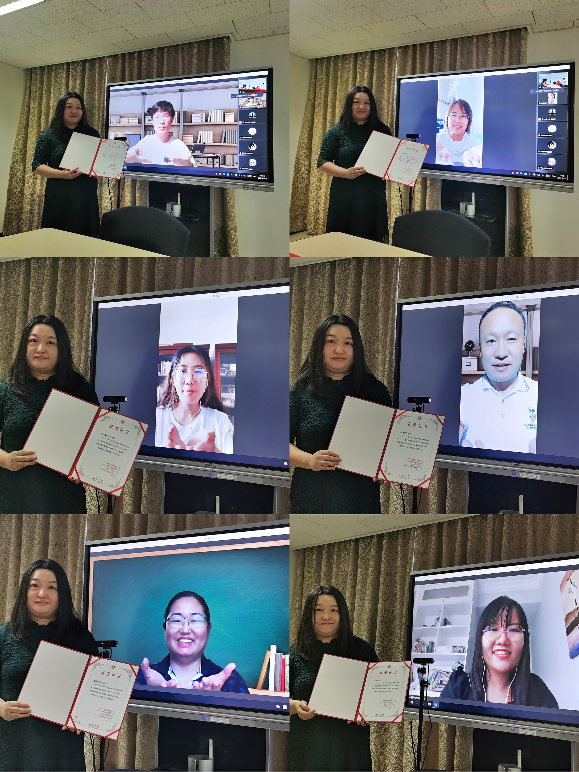 2021年“一带一路”合作共建中阿命运共同体全国高校阿拉伯语专业征文大赛颁奖仪式于8月25日在乐动在线中国官方网站新楼402室举行,由于疫情,无法邀请所有获奖同学和院校到场,本次颁奖仪式以线上和线下融合的形式进行。获奖同学及其所在学校的部分教师代表约40人在线上参加。本次颁奖仪式由乐动在线中国官方网站长聘副教授廉超群主持。