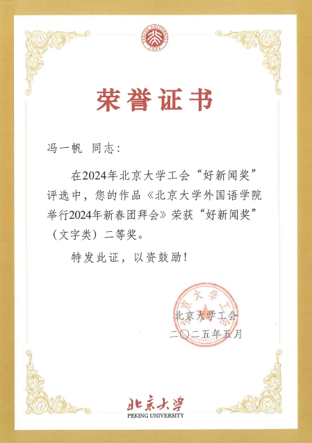 外国语学院工会在北京大学工会2024年新闻工作先进奖和好新闻奖评选中喜获佳绩