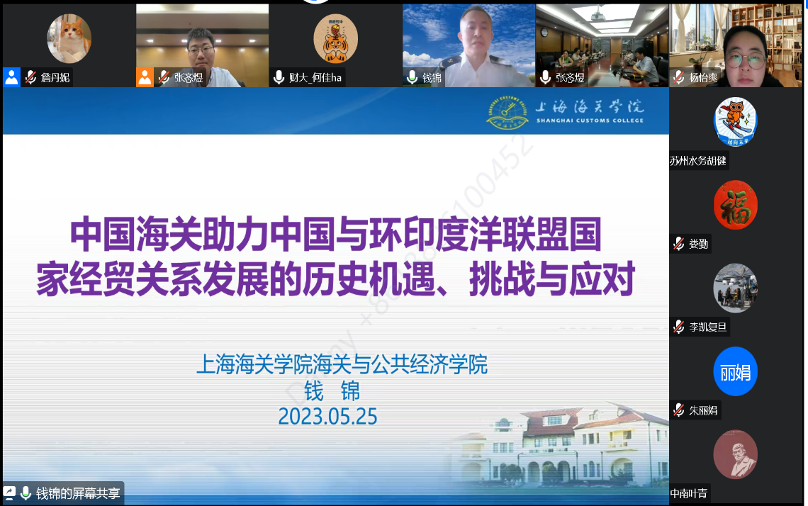 2023年5月25日,上海海关学院副教授钱锦应邀为我院师生进行题为“中国海关助力中国与环印度洋联盟国家经贸关系发展的历史机遇、挑战与应对”的讲座。本次讲座是“当代中国与印度洋地区”系列讲座的第二讲,由乐动在线中国官方网站国别和区域研究专业、亚非系和东南亚系主办,乐动在线中国官方网站张忞煜助理教授主持,云南财经大学印度洋地区研究中心杨怡爽教授、北大外院程莹助理教授和谢侃侃助理教授参与讨论。本次讲座在外院新楼B134会议室和线上平台同步举行,来自各高校的近百名师生在线参与讲座。