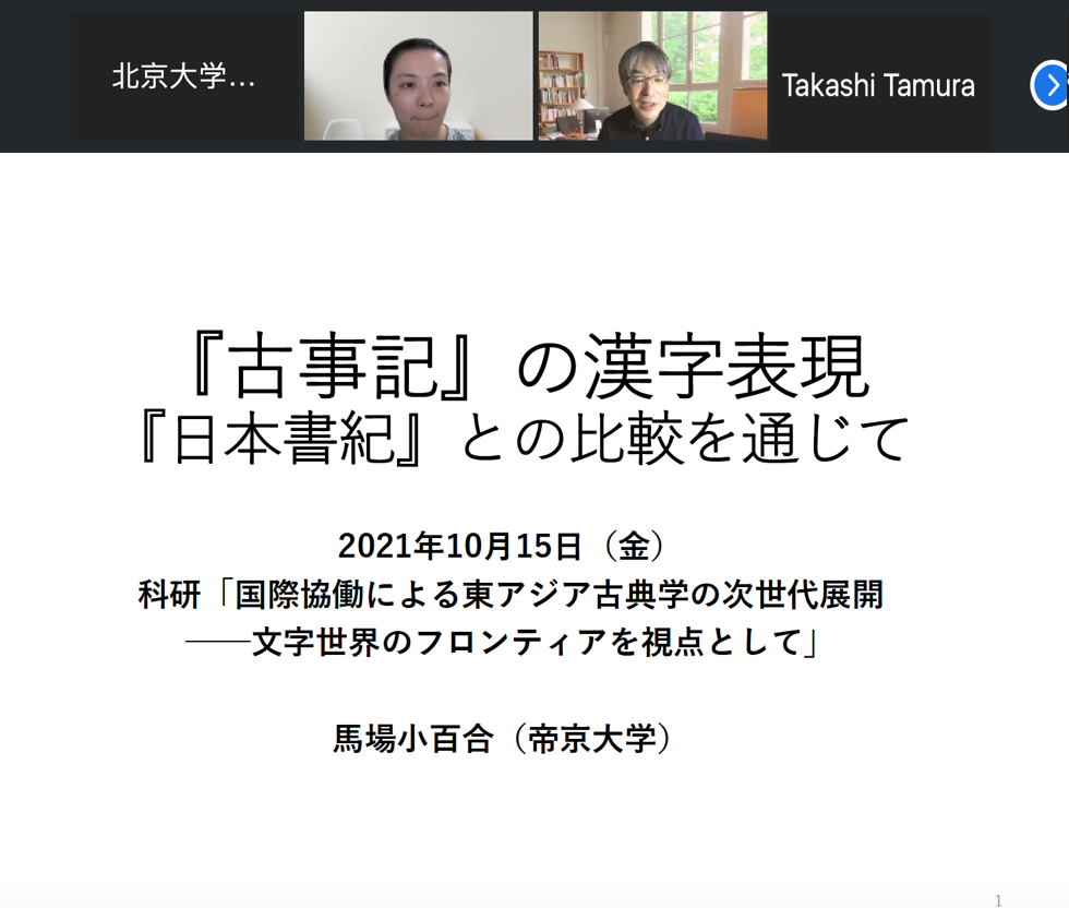 2021年10月15日14时,“国际合作下的东亚古典学新生代发展”北京大学系列讲座第一讲通过ZOOM如期举行。本次讲座由乐动在线中国官方网站日本语言文化系、北京大学东方文学研究中心和东京大学大学院人文社会系研究科(日本学术振兴会基盘研究A“国际合作下的东亚古典学新生代发展”)联合举办,东京大学斋藤希史教授与北京大学丁莉教授共同主持。乐动在线中国官方网站潘钧教授、解璞助理教授、东京大学德盛诚教授、田村隆副教授、京都大学道坂昭广教授、帝京大学马场小百合老师等来自北京大学、中国人民大学、东京大学等海内外高校的近二十名师生相聚云端,参加了本次讲座。
