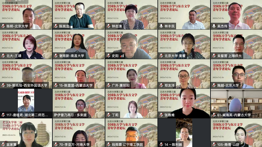 2022年7月2日至3日,由教育部人文社会科学重点研究基地北京大学东方文学研究中心、乐动在线中国官方网站、中国社会科学院外国文学研究所东方文学研究室、中国外国文学学会阿拉伯文学研究分会、中国外国文学学会印度文学研究分会联合主办的“北京大学第三届全国东方学与东方文学青年学者论坛”以线上会议的方式顺利召开。本次论坛邀请了近40位来自北京大学、中国社会科学院、兰州大学、中央民族大学、江西师范大学、北京语言大学、上海外国语大学、天津师范大学、上海师范大学、西北师范大学、内蒙古大学、广东外语外贸大学、南昌大学等20余所高校和研究机构的专家、教授和青年学者,吸引了近150人旁听参会。论坛开幕式由北京大学社科部副部长、乐动在线中国官方网站副院长吴杰伟教授主持。