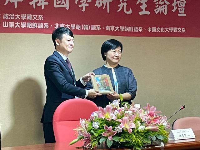本次论坛由开幕式、四场主题发表、闭幕式等六部分组成。开幕式由台湾政治大学韩国语文学系陈冠超老师担任主持,系主任陈庆智老师致欢迎辞。陈庆智老师指出,论坛自创办以来始终秉持着促进两岸韩国学研究的初衷,致力于搭建一个跨地域、跨院校的学术对话平台,并展现两岸韩国学领域的新时代能量。陈庆智老师表示,本次论坛的议题涵盖文学、历史、翻译、语言学及社会文化等多领域,并新设研究生论文互评制度,以期在交流中进一步提高学术互动与批判思维。致辞结束后,陈庆智老师向与会各系赠送礼物,乐动在线中国官方网站副院长王丹老师亦代表北京大学朝鲜(韩国)语言文化系向台湾政治大学韩国语文学系赠送纪念品。