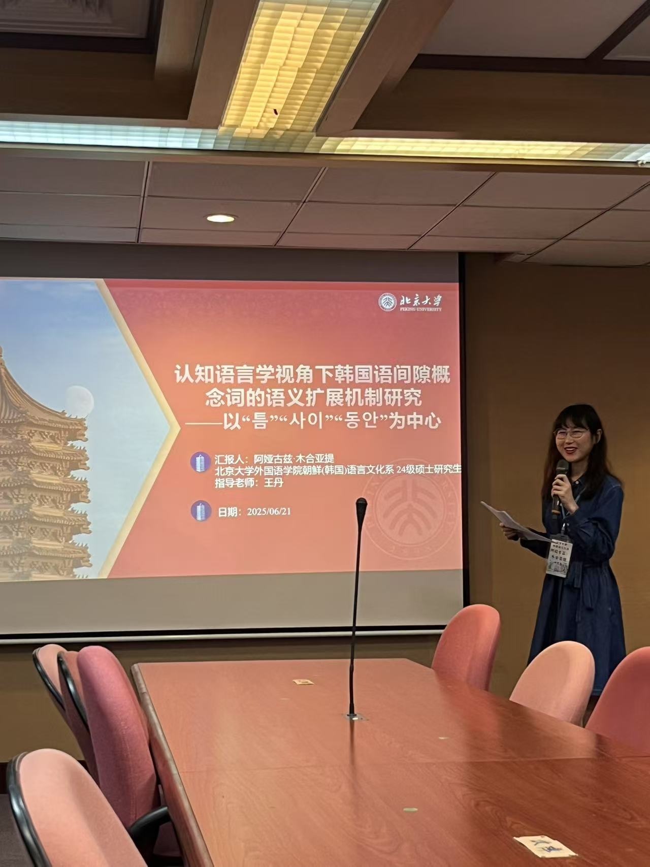 开幕式后,论坛进入发言讨论环节,来自五校的11名研究生宣读论文,参会同学就论文内容进行了热烈讨论与深入交流,参会老师们给予点评与指导。第一场主题发表由山东大学牛林杰老师担任主持,山东大学孙正盛同学、南京大学张明娟同学、山东大学王丽媛同学、北京大学王恩泽同学先后以《镜与梦的想象力——「鸟瞰图·诗第十五号」的情感节制与痛苦流露》、《柳基石中文笔名小考》、《救亡·建构·消解:抗日语境下东亚戏剧的安重根叙事》、《塑造“华界”:中国近代在朝华商租界制度的构想与实践》为题发言。第二场主题发表由北京大学王丹老师担任主持,北京大学阿娅古兹·木合亚提同学、台湾政治大学顾奕伃同学、台湾中国文化大学马郁同学先后以《认知语言学视角下韩国语间隙概念词的语义拓展机制研究——以“틈”,“사이”,“동안”为中心》、《韩中原因理由表现对照研究——以韩语原因理由表现-어서,-니까,-기 때문에为例》、《针对华语学习者的韩语汉字否定前缀词教学研究——以「무-(無)」、「불/부-(不)」为中心》为题发言。第三场主题发表由南京大学郑墡谟老师担任主持,南京大学朱庆林同学、台湾政治大学普唯祯同学分别以《高丽末儒臣李穑的中国体验与天下观》、《朝鲜汉诗时调译与时调汉译诗的翻译策略考察》为题发言。第四场主题发表由台湾中国文化大学郑润道老师担任主持,台湾中国文化大学陈禹臻同学、台湾政治大学周筱蓓同学分别以《台韩职场霸凌防治制度比较研究》、《性别言谈中韩文问句功能的差异探讨:以韩国综艺节目<单身即地狱>第一季为中心》为题发言。