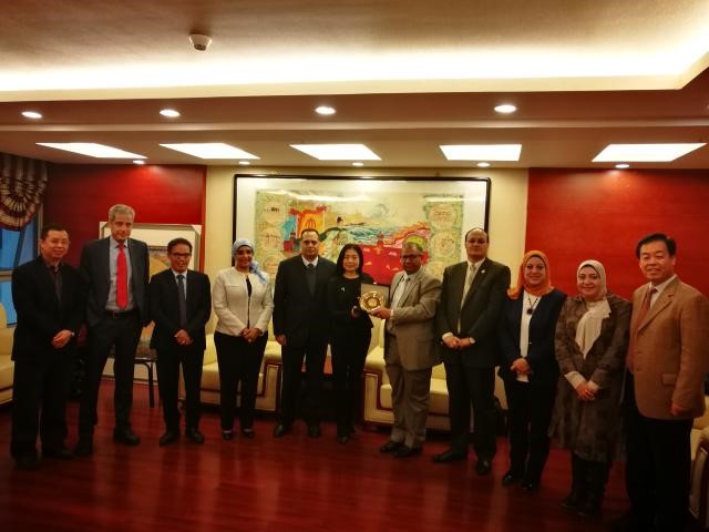 乐动在线中国官方网站院长宁琦教授(左六)会见参会的开罗大学学者代表团