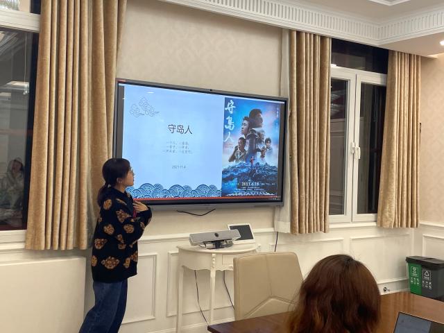 随后,外国语学院团委学生副书记苏泰霖同学为大家介绍电影《守岛人》。王继才,王仕花夫妇驻守开山岛的故事深深地打动了大家。32年,11680个日日夜夜,写下189本日志。一个人、一座岛,一辈子、一件事,一声承诺、一生坚守。从怨到爱,从守到建,人民楷模”王继才纯粹而崇高的精神境界超越了时空,生动体现了爱国主义精神和革命英雄主义的真谛。该片正是以平民的视角,成功地向大众展示了英雄人物的崇高品格,从而激发了广大民众的共鸣。