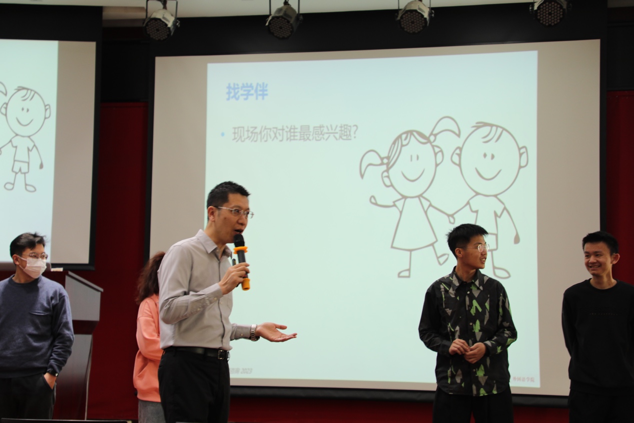 讲座开始前,邹飞与同学们亲切互动,并组织了暖场活动,让同学们在现场找到自己最感兴趣的人,并两两结对成为“学伴”。“找学伴”的活动不仅活跃了气氛,也让同学们从中受到启发——寻找学伴的过程如同求职,即便有可能遭到拒绝,也要积极尝试。