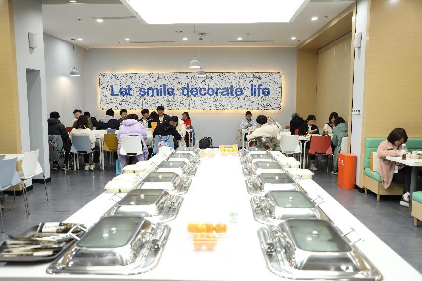 交流结束后,同学们品尝了学而思食堂提供的公司餐饮。就餐环境干净整洁,膳食搭配合理,还有水果以及酸奶。同学们一边享受美食,一边交流今天的参访经历,在轻松愉快的氛围中结束了用餐,乘坐班车返回学校。