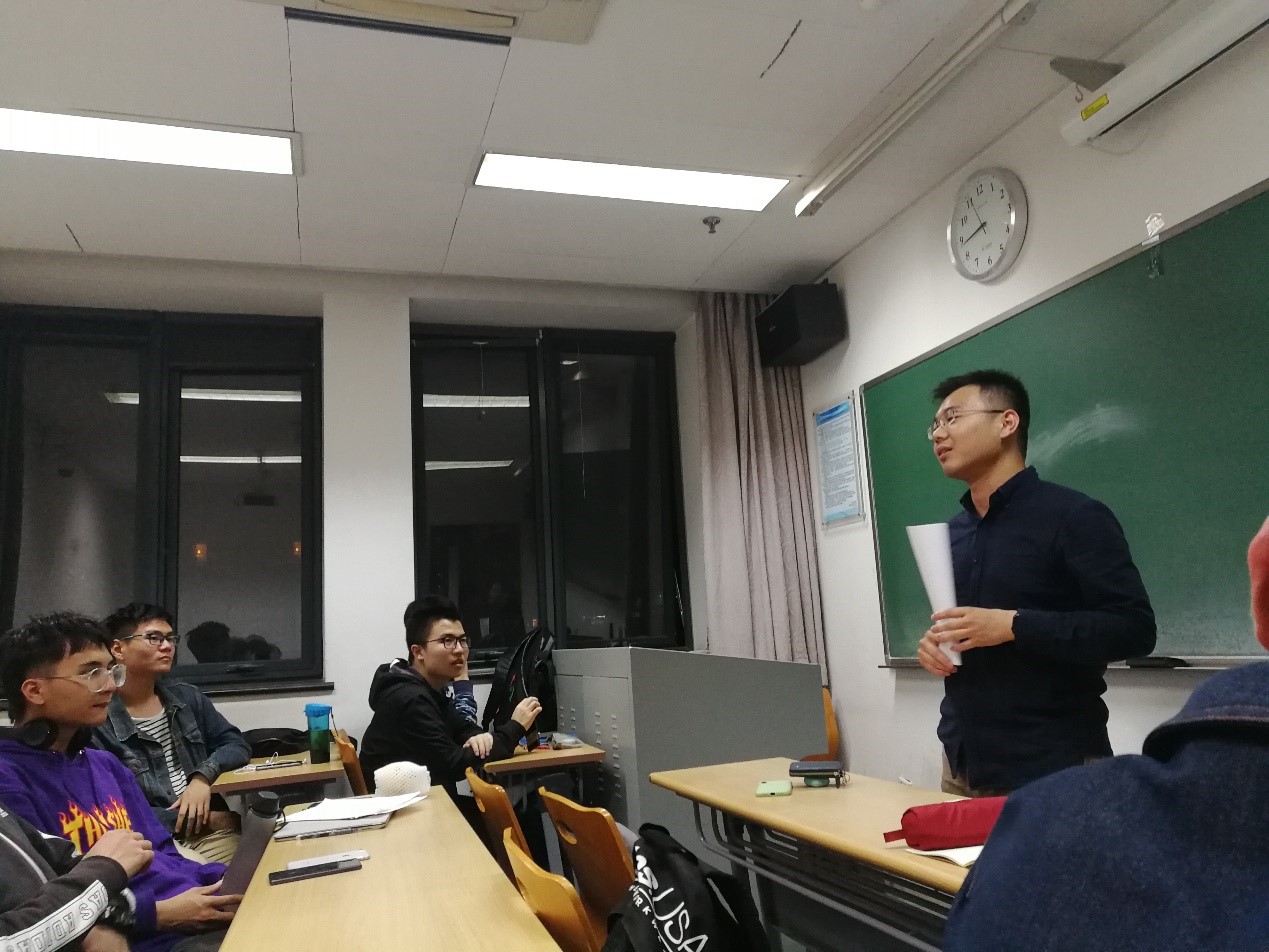 2019年4月18日20:40,外国语学院2018级法语专业本科生班在四教407举办“学规矩、讲规矩、守规矩”主题活动,2018级法语专业所有本科生均参加了班会,学习活动由班长宋若瑾主持,辅导员李涛为同学们宣讲校规校纪。