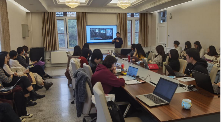 接着,王旭老师讲述了外语人在处理边境问题中的经历与贡献,向同学们展示了边境口岸的地图,希望同学们在做区域研究时将书本知识和田野实际相结合,在外语研究的过程中注重实践经历,亲自到祖国的边境口岸去走一走。王旭老师还讲述了边境战士的戍边生活,致敬他们为保家卫国抛头颅洒热血的崇高精神,鼓励同学们学习戍边战士不畏艰险的品质。