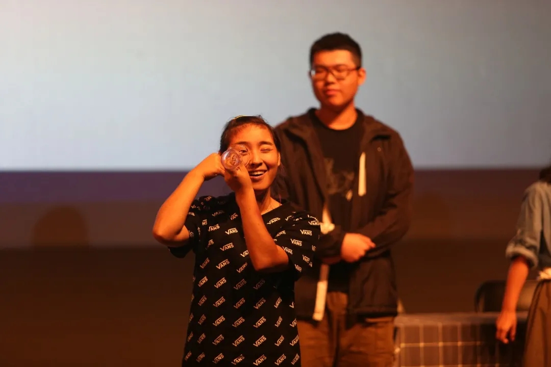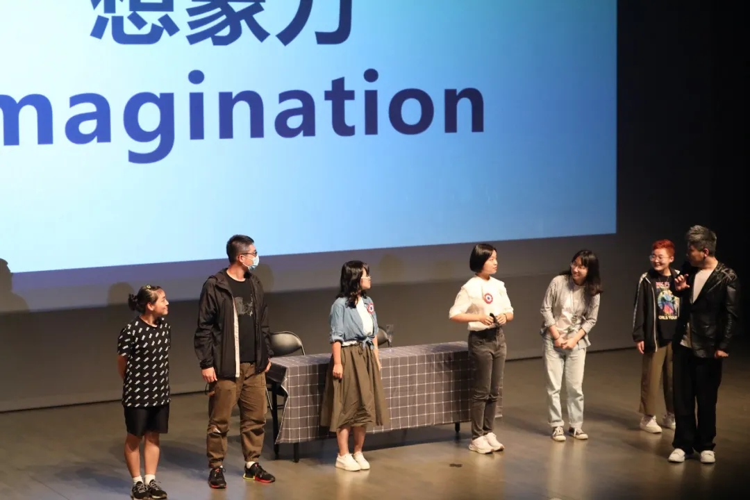 第二次的互动环节,郭震老师邀请同学们在台上进行临时设定情境的即兴表演。郭震老师对同学们在表演过程中展现出的出色想象力与创造力表示十分惊喜,并鼓励同学们未来在戏剧表演方面进行更多的探索与尝试。同学们也在舞台表演的过程中,学到了表演尺度的控制技巧,并了解了舞台灯光场地流程的细节安排。