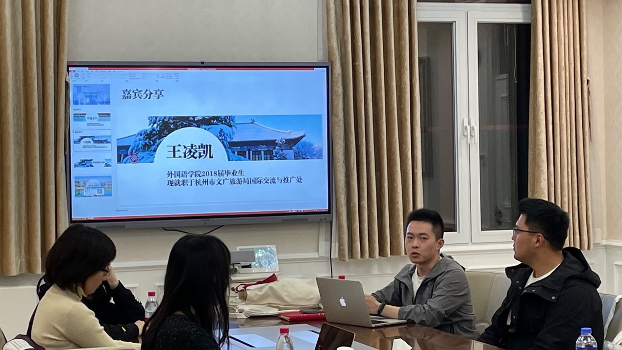为帮助同学们更好地了解地方选调生的工作情况,外国语学院推出“暖心计划,领航未名——‘我在祖国基层’选调报告会”系列活动。2021年10月15日晚,现就职于甘肃省甘南州委组织部的旦知才旦学长和就职于杭州市文广旅游局国际交流与推广处的王凌凯学长为大家分享了自己的选调经历。外国语学院团委书记卢敏、辅导员丁尧,以及十余名外院学子参加了此次报告会。