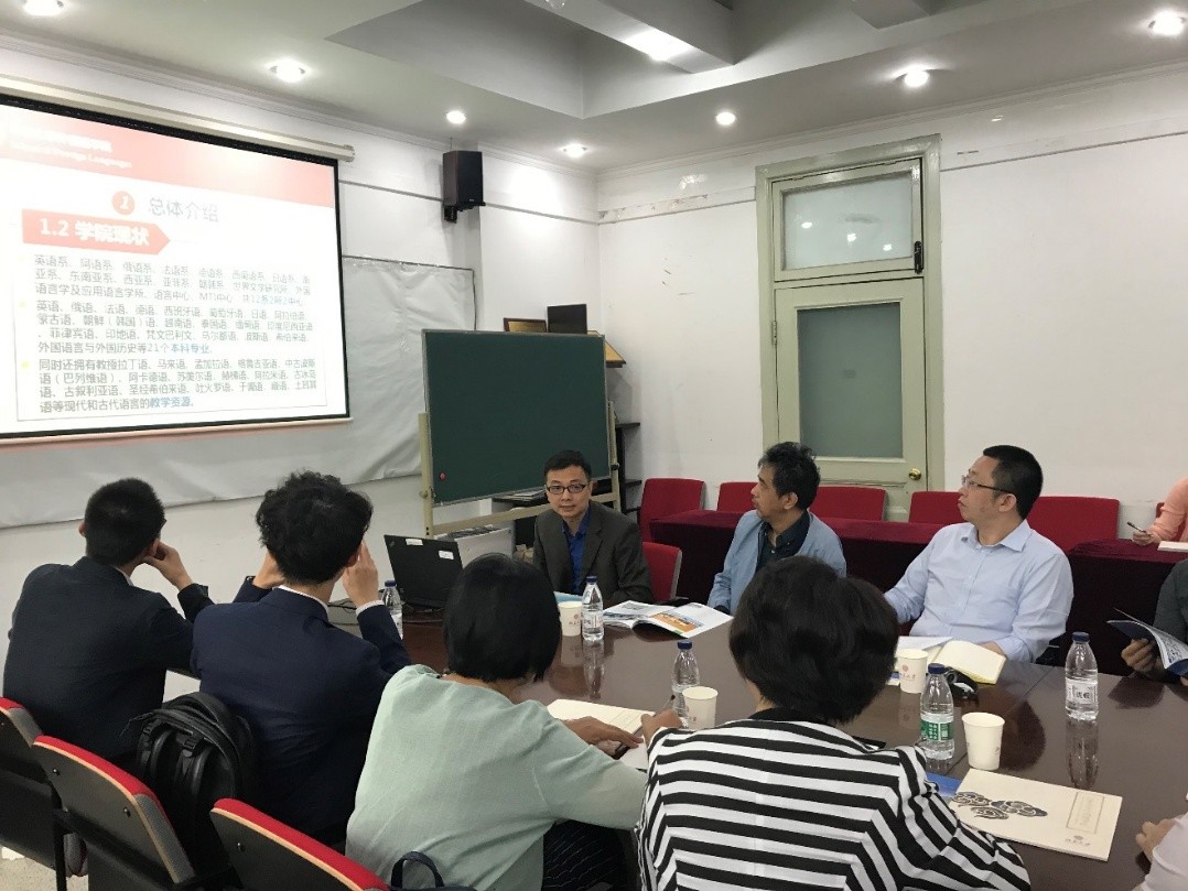 2018年5月11日上午,厦门大学外文学院副院长徐琪、英语系系主任杨士焯、法语系系主任鲁京明、日语系副系主任任星、西班牙语专业教研室主任李文进、教学科科长陈雯娜、团委书记乐无恙一行7人来访乐动在线中国官方网站,调研教学工作、共青团工作和学生工作。乐动在线中国官方网站副院长吴杰伟、党委副书记王恒、俄语系系主任陈松岩、英语系系主任高峰枫、西班牙语系系主任范晔、日语系副系主任李奇楠、法语系教师王斯秧、教务主任崔桂红、团委书记王艳超、教务办公室李宁出席座谈。