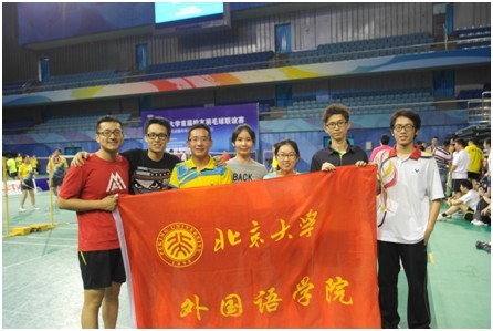 返校日当天,北京大学第一届校友羽毛球俱乐部联谊赛在邱德拔体育馆举行。来自全世界各地的三十六支校友代表队,共计两百多名校友参加了比赛。经外国语学院院友会积极组织,派出 “外羽队”强大阵容在赛场上一展风采,他们是:张甜甜(06级英语专业)、彭彦智(06级朝鲜语专业)、王世岳(06级德语专业)、王琰(08级俄语专业)、董斌(09级朝鲜语专业)、张晓雷(09级越南语专业)和沈静思(13级英语专业硕士研究生)。值得一提的是,彭彦智专程从深圳赶回北京,为外羽队增添一员猛将。在场上,年轻的院友们奋勇拼搏,并肩战斗。董斌连续拿下三场男单比赛的胜利,展现了外院院友的竞技水平。张甜甜、沈静思在混双比赛中交替出战,每球必争。彭彦智、王世岳、王琰、张晓雷在男双或混上比赛中与校友协同作战,默契配合。在场下,来自不同学院、不同地区的校友通过这次比赛增进了解,校友们其乐融融,共叙北大生活。在比赛结束后,校友羽毛球俱乐部会长谢杏芳还向参赛队员传授技艺。羽球不过五克,凝聚全球北大人的心;羽网长只六米,拉起天下外院人的手。