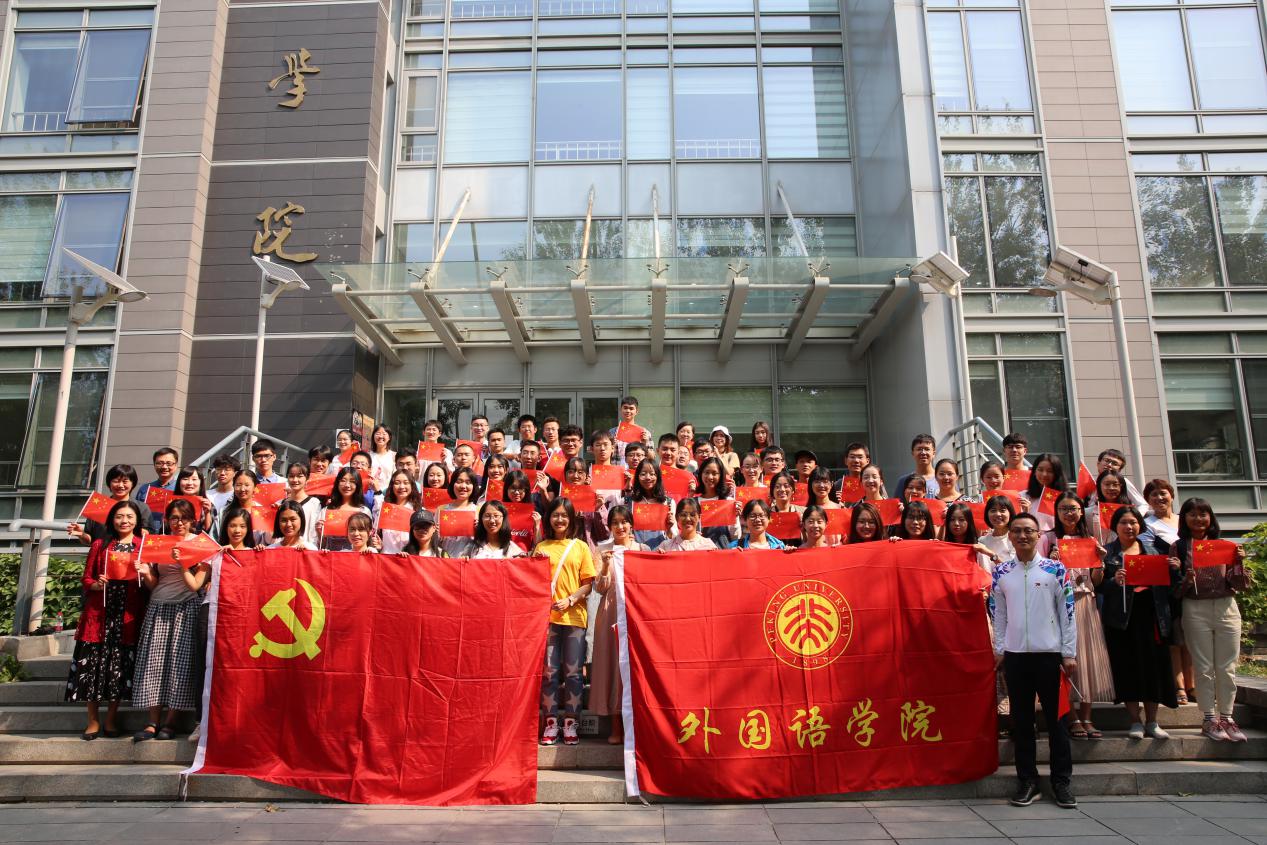 观礼活动于上午九时准时开始。同学们认真倾听习近平同志的重要讲话,跟合唱团一起唱起那首熟悉的《我和我的祖国》。随后阅兵仪式正式开始,同学们被空前盛大的场面所震撼,心中涌起一份强烈的民族自豪感。此次庆典,外国语学院有56位同学参与了天安门前的合唱方队,30名师生参与了方阵游行,2名同学参与了志愿服务。当“凝心铸魂”方阵迎面走来时,同学们的情绪达到了顶点。“人民有信仰,国家有力量,民族有希望”的金句让同学们很有共鸣。大家高呼“团结起来,振兴中华”的口号,表达对伟大祖国的祝愿与自豪之情。