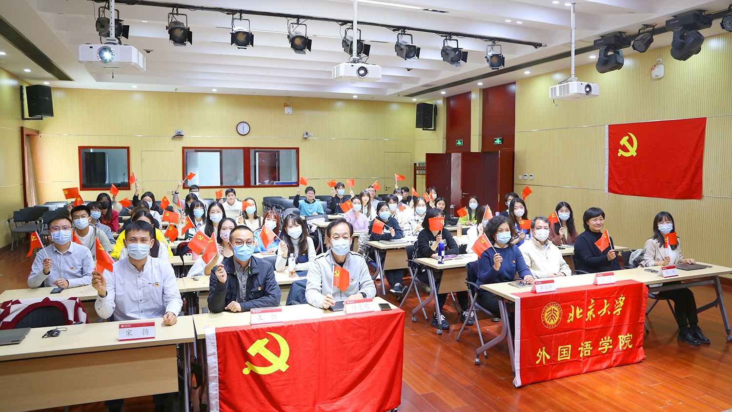 高举伟大旗帜,谱写崭新篇章。党的二十大是一次高举旗帜、凝聚力量、团结奋进的大会,在党和国家发展进程中具有极其重大的历史意义。外国语学院师生必将更加紧密地团结在以习近平同志为核心的党中央周围,坚决拥护新一届中央领导集体,持续、深入学习领会党的二十大精神,以党的二十大精神为指引,踔厉奋发、勇毅前行,不负重托、不辱使命,以实际行动践行责任担当,为全面推进中华民族伟大复兴而不懈奋斗!