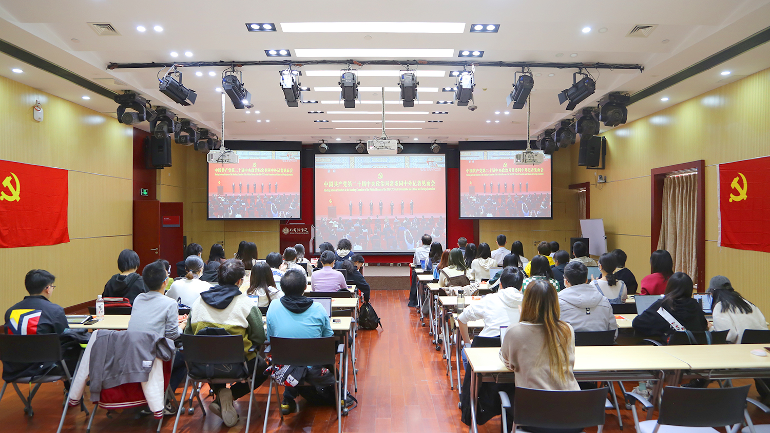 外国语学院组织师生集体观看第二十届中央政治局常委同中外记者见面会直播