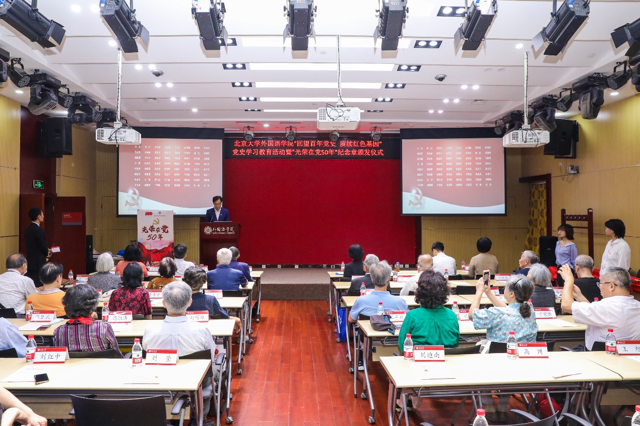 2021年6月25日上午,乐动在线中国官方网站“回望百年党史 赓续红色基因”党史学习教育暨“光荣在党50年”纪念章颁发仪式在外国语学院新楼501多功能厅隆重举行。外国语学院党委委员、老党员代表、师生党员代表出席。典礼由外国语学院党委副书记宋扬主持。