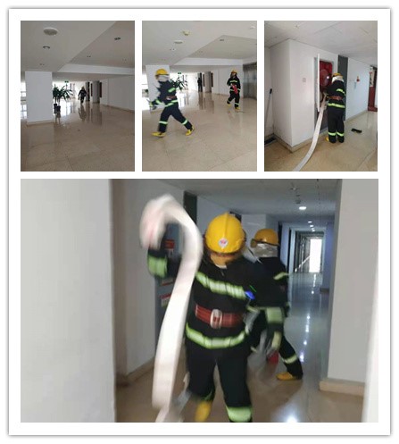 本次消防疏散演练活动以新楼三层会议室突发火情为背景,分别对灭火和疏散进行了演练。张冬梅副院长担任总指挥,一声令下,演练开始。中控室的值班人员汇报火情并启动应急预案,微型消防站人员迅速穿好战斗服赴火灾现场,连接消火栓控制火势。随后中控室启动消防广播系统,通知各楼层人员进行疏散,疏散组成员迅速各就各位,组织楼内人员有序疏散。