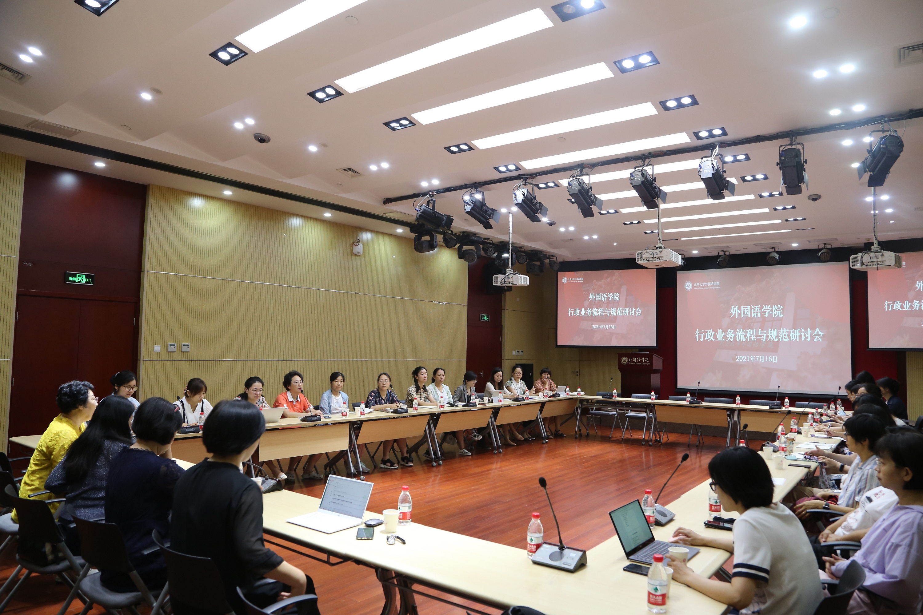 7月16日上午,“外国语学院行政业务流程与规范研讨会”在新楼501会议室召开,本次会议作为本学期的业务交流会,围绕行政业务流程与规范进行专题研讨。会议由副院长张冬梅主持,院长宁琦、党委书记李淑静、副院长吴杰伟、王丹以及全体行政人员参加了本次研讨会。