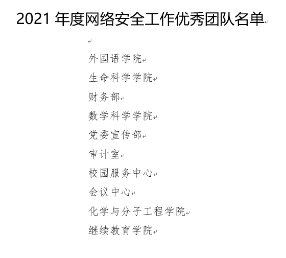 根据学校整体部署,网信办牵头启动了网络安全年度总结暨评优工作,成立了由网信办主任、副主任成员单位(网信办、宣传部、保卫部、总务部、计算中心、青年研究中心)组成的评选工作小组,经过严格评选,乐动在线中国官方网站荣获北京大学2021年度网络安全工作优秀团队。