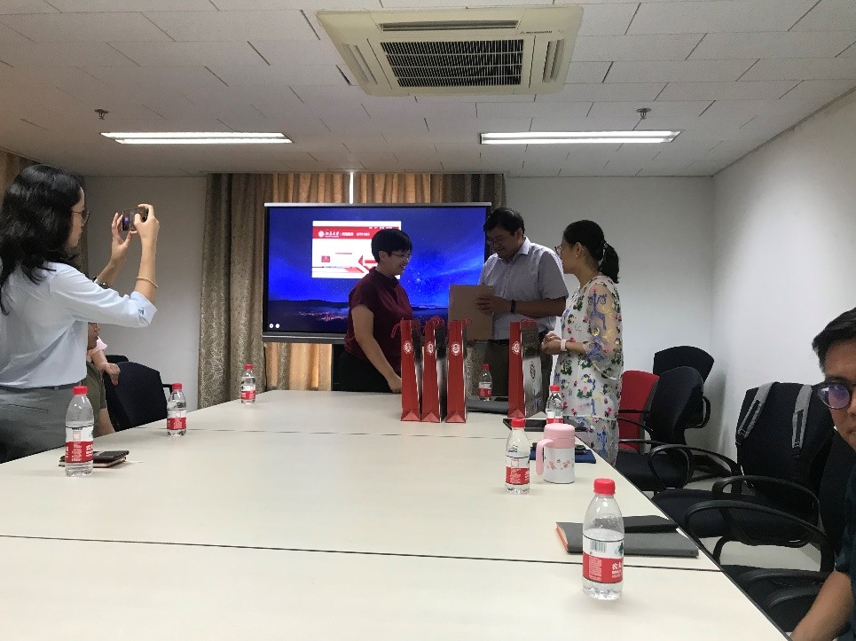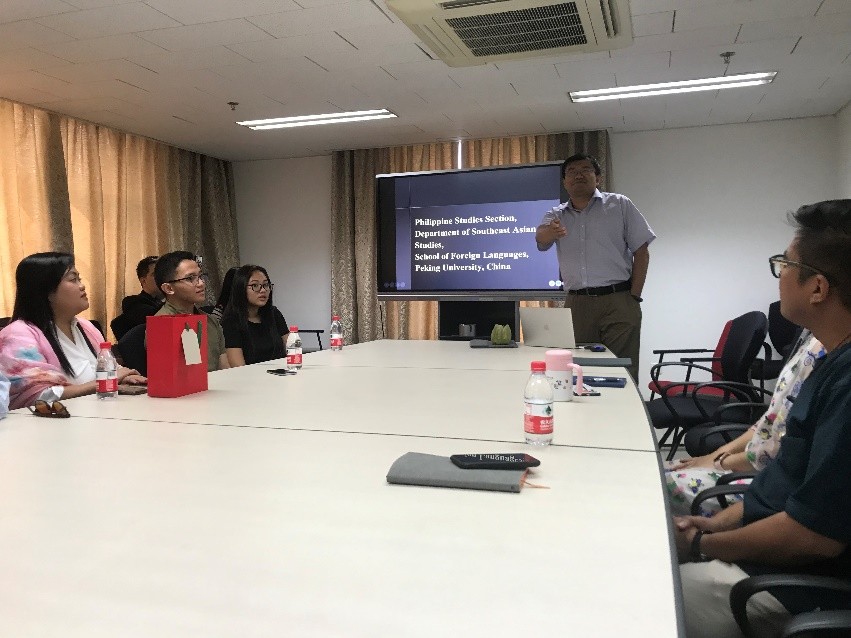 座谈会上,菲律宾语教研室主任史阳老师发表了欢迎辞,并为菲律宾高校师生介绍了北京大学菲律宾语专业的学科设置及发展概况。随后,三所菲律宾高校的学生与我校师生进行了愉悦的交流,畅谈中菲文化的差异以及他们来到中国后的见闻和体会。最后,双方教师代表互换纪念礼品,共商合作,搭建友谊桥梁。