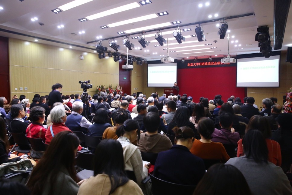 以日语系系友会的成立为契机,头发斑白的老系友、活跃在社会各个领域的青壮年系友以及在校的日语系师生欢聚一堂。北京大学日语系系友会的成立,既可以加强系友之间及系友与日语系师生之间的联系,促进北京大学日语学科的发展,也将激励在校师生与系友们一道为增进中日两国民间友好交流与合作在新时代实现中国梦做出应有的贡献。