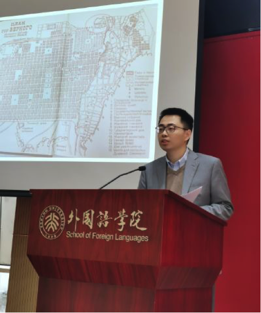 第四时段由北京外国语大学林建彬同学主持,北京大学阿拉伯语系助理教授李海鹏评议。第一位发言的是来自北京大学的彭源同学,题目是《月亮山:无法抵达的乌托邦——中世纪尼罗河源头的历史回溯》,第二位发言的是来自天津外国语大学的宋箫箫同学,题目是《从〈蓝灯〉中解读哈纳•米纳现实主义创作手法》,第三位发言的是来自对外经济贸易大学的魏丛丛同学,题目是《数字丝绸之路”视角下的中沙合作》。三位同学发言结束后,李海鹏进行了评议,针对给位同学的发言给出了自己的意见,指出了论文中存在的问题,如史料的逻辑连续性不强、注释不够严谨等,但他同时也对大家的辛勤劳作做出了肯定。点评结束后,同学们纷纷表示受益匪浅。