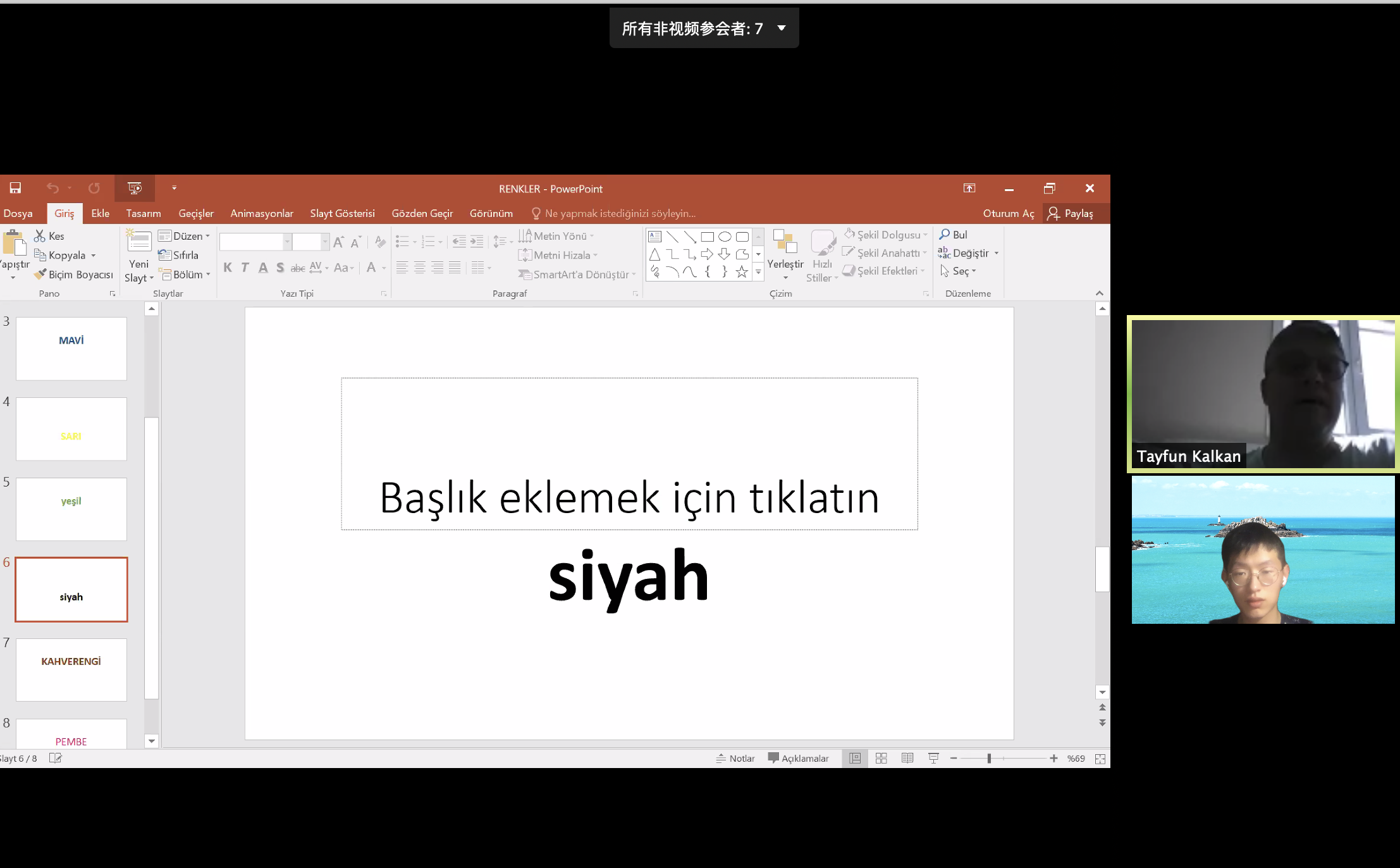 本学期《土耳其语(二)》课程由土耳其专家泰帆·凯尔康(Tayfun Kalkan)在zoom平台做实时主讲,Tayfun老师注重学生的口头表达能力,十分耐心地与每一位同学用最地道的土耳其语进行交流、训练,让每个学生都有机会开口讲土耳其语。在网络平台上,大部分学生在大多数情况下都能顺利完成与人在土耳其的外专的实时交流,课堂效果良好,老师和学生的热情度也较高。虽然zoom平台无法满足对影音材料还原度的要求,各别教学任务无法顺利进行,但整体来说zoom平台已经实现了日常教学所需要的大多数功能,相信在Tayfun老师的努力和网络平台的帮助下同学们的土耳其语水平可以得到全方面的提高。