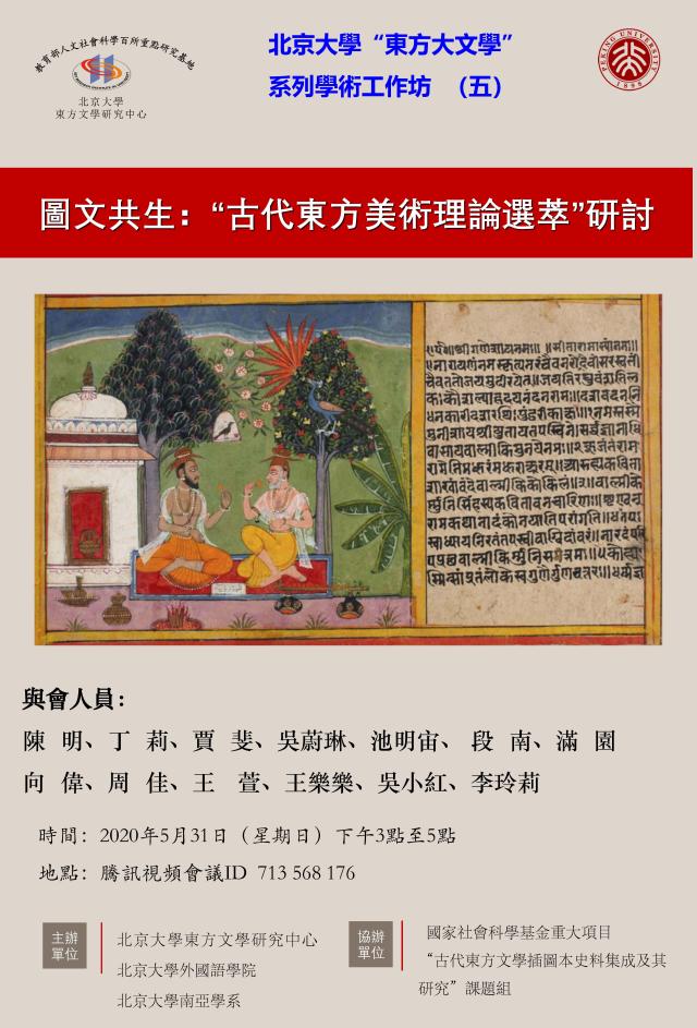 2020年5月31日下午,北京大学“东方大文学”系列学术工作坊第五次活动——“图文共生:古代东方美术理论选粹”研讨会,采用腾讯视频会议形式,顺利召开。该会议由教育部人文社科重点研究基地北京大学东方文学研究中心、乐动在线中国官方网站、北京大学南亚学系共同主办,是国家社会科学基金重大项目“古代东方文学插图本史料集成及其研究”课题组的系列活动之一。来自北大、对外经济贸易大学、中山大学、北京科技大学、土耳其伊斯坦布尔大学的十余名课题组成员参与了此次研讨。