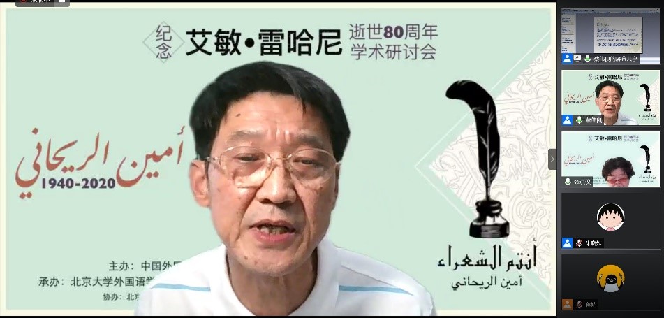 北京大学阿拉伯语系林丰民教授代表阿拉伯文学研究会致辞,他指出雷哈尼的作品对阿拉伯世界起到启蒙的作用,字里行间中散发着对民主和改革的呼吁。在文学艺术方面,雷哈尼的文字非常优美,讲究音乐性。尽管阿拉伯世界认为纪伯伦首创散文诗并自成体系,但实际上雷哈尼创作比纪伯伦还早,因此不应忘却雷哈尼在这方面所做的贡献。