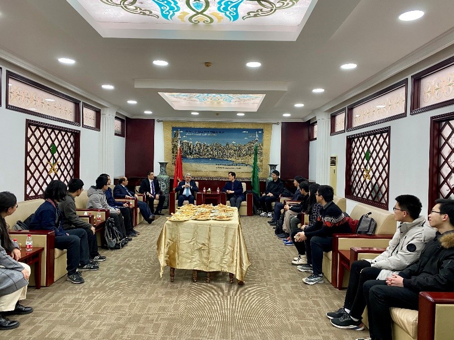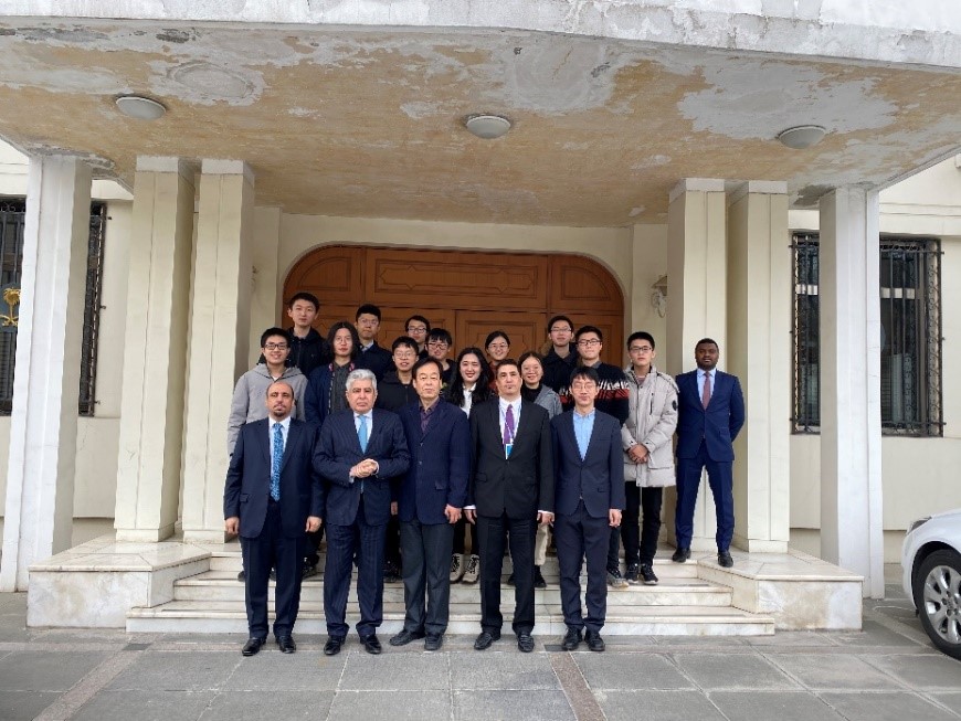 应沙特阿拉伯王国驻华大使图尔基•本•穆罕默德•本•阿卜杜拉•艾勒马迪阁下邀请,乐动在线中国官方网站2019级本科阿拉伯语班同学们在外国语学院副院长付志明老师和阿语系李海鹏老师带领下,参访沙特驻华大使馆。同行的还有2020级研究生区俊良。