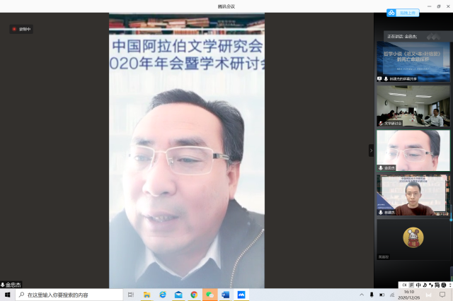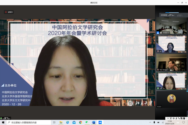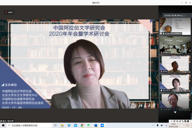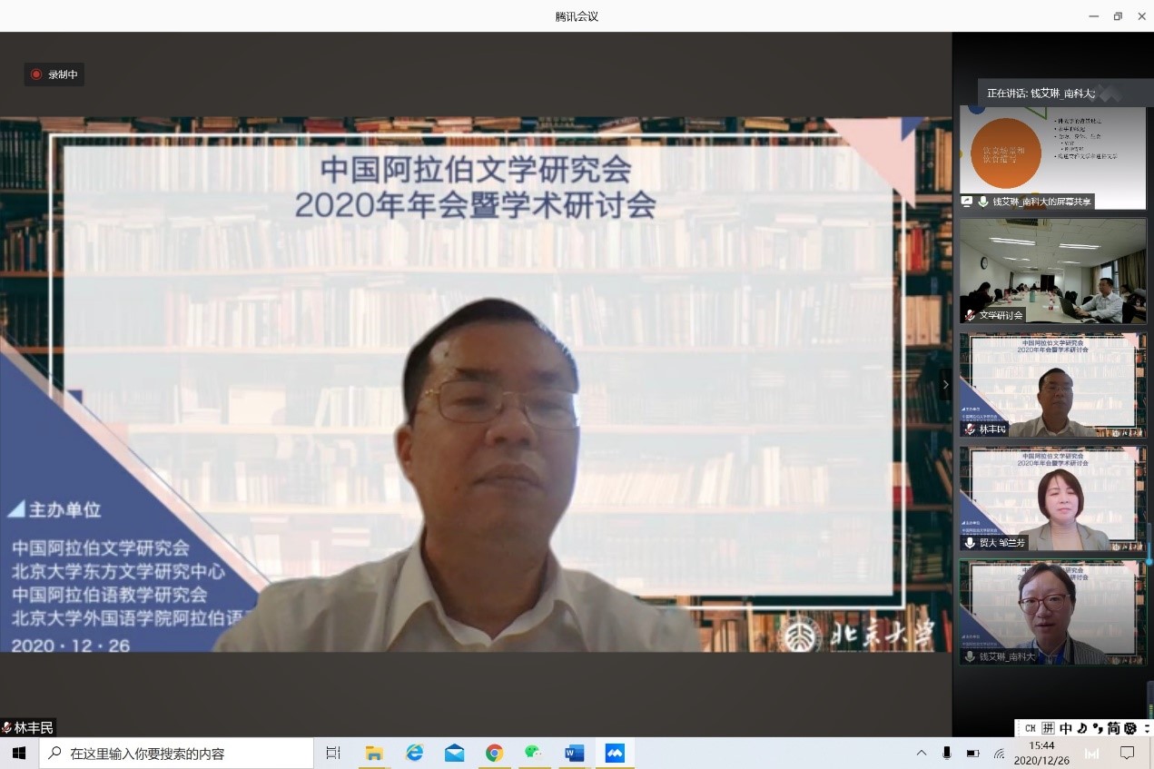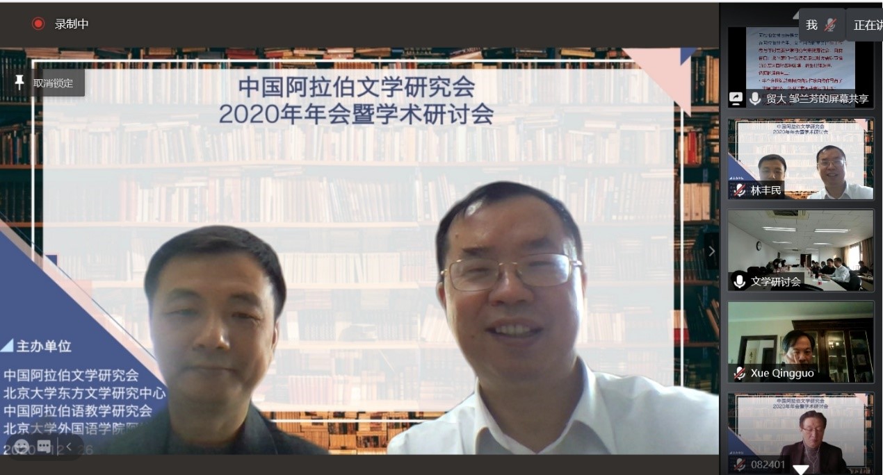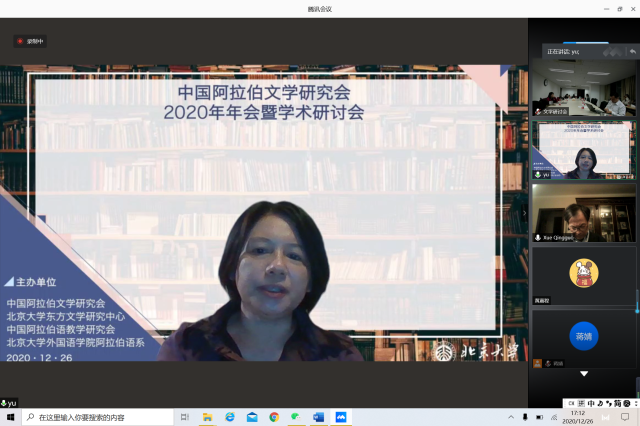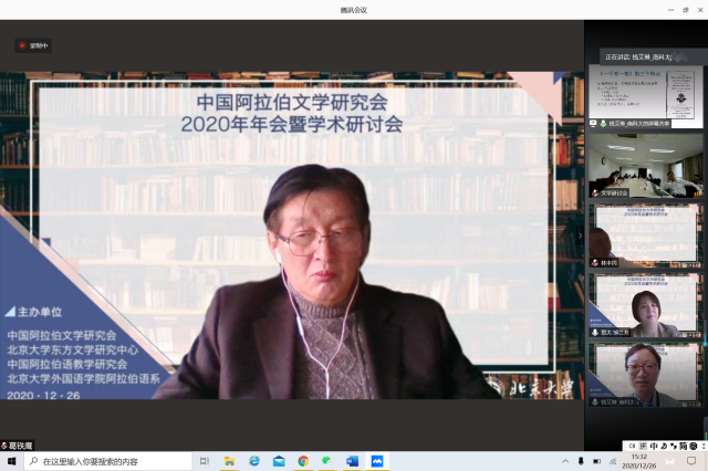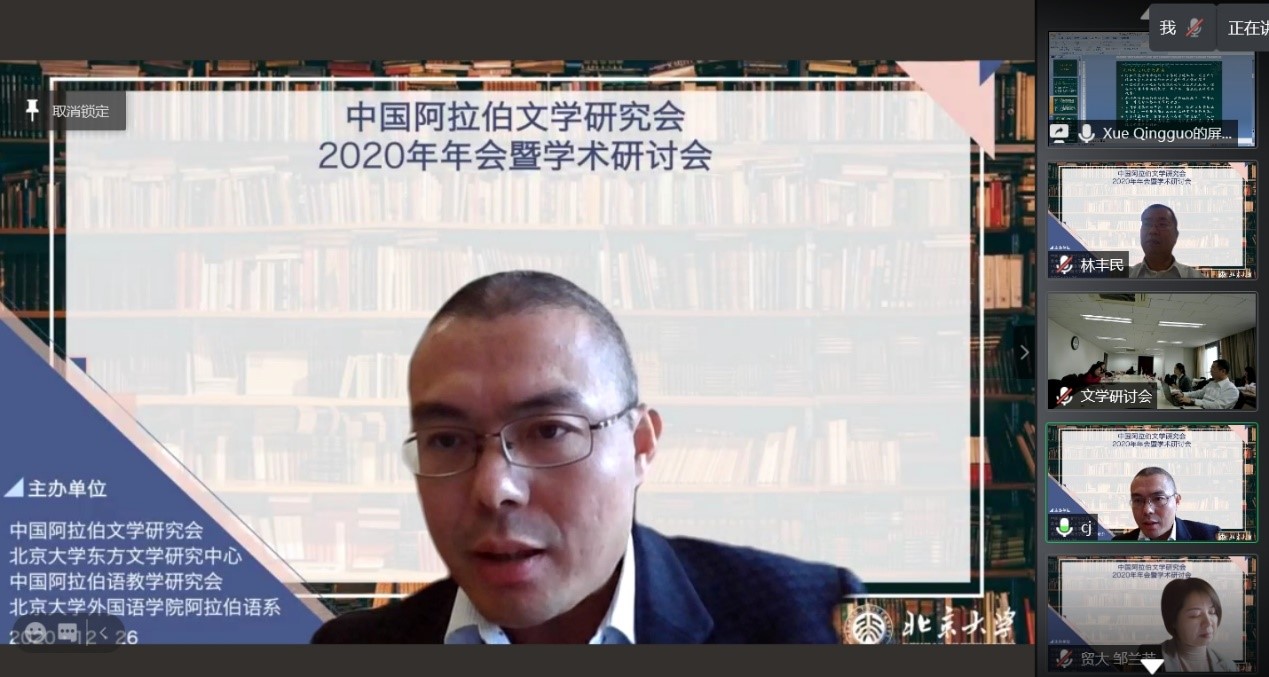2020年12月26日,由中国外国文学学会阿拉伯文学研究分会、乐动在线中国官方网站阿拉伯语系和北京大学东方文学研究中心联合举办的“中国外国文学学会阿拉伯文学研究分会2020年会暨学术研讨会”以线上线下混合的方式召开。本次会议共有来自北京大学、中山大学、对外经济贸易大学、宁夏大学、北京外国语大学、上海外国语大学、北京语言大学、南方科技大学、西北民族大学、西北师范大学、索邦大学文学院(巴黎四大)、威廉•玛丽大学、埃及亚历山大大学、马来西亚苏丹阿都哈林姆阿占沙国际伊斯兰大学和中国社会科学院外国文学研究所等高校和研究机构的100多人参加。开幕式由研究分会副会长、北京外国语大学谢赫扎耶德研究中心主任薛庆国教授主持。