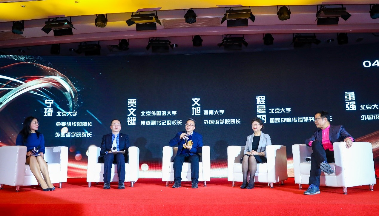 在许渊冲先生翻译思想研讨环节,乐动在线中国官方网站院长宁琦担任主持人,邀请北京外国语大学党委副书记、副校长贾文键,西南大学外国语学院院长文旭,北京大学新闻与传播学院教授、北京大学国家战略传播研究院院长程曼丽,乐动在线中国官方网站法语系主任董强,共同研讨许渊冲先生翻译思想。各位嘉宾高度肯定了许渊冲先生的翻译成就,对先生一生投身翻译事业,期颐之年仍坚持工作、笔耕不辍的精神表示钦佩,并赞扬先生晚年翻译已臻化境,如行云流水,自然天成。同时,各位嘉宾深情分享了与许渊冲先生结缘的生动故事,并就许渊冲先生的翻译工作对中外文化交流的影响、人类命运共同体建设中的中国优秀文化外译与国际传播、当代中外文化交流的特点等问题进行了深入研讨。最后,嘉宾们表达了对青年学者、青年学生的殷切期待,鼓励大家以许渊冲先生为榜样,在中外文化交流中展现中国青年的智慧与风采。
