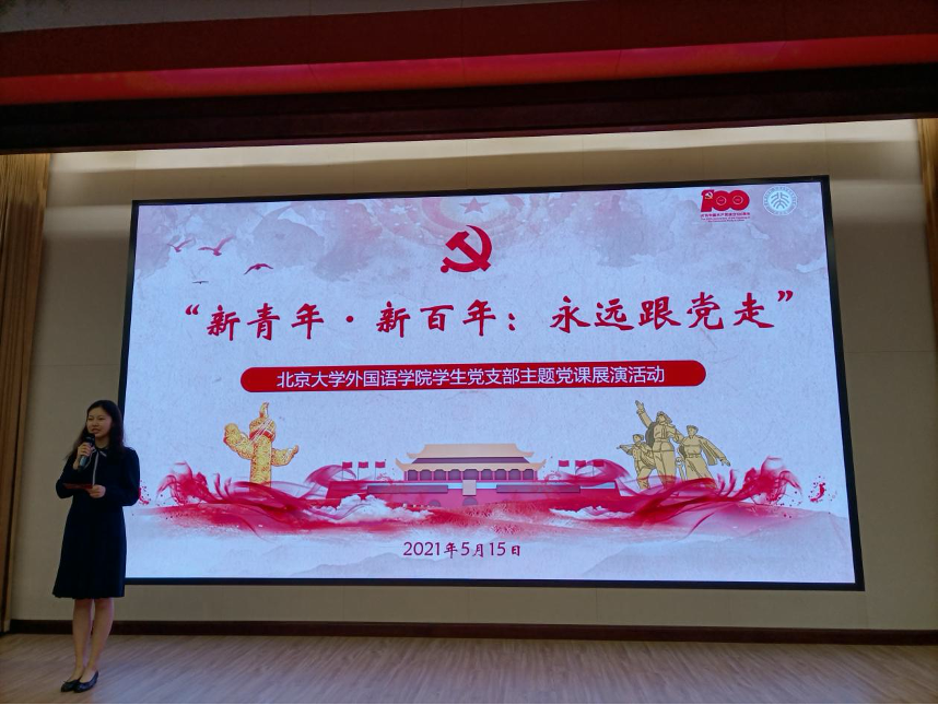 4月至5月,外国语学院各学生党支部开展了“新青年·新百年:永远跟党走”主题党课活动,各支部以党员或党小组为单位,在支部内讲述专题党课。5月15日上午,外国语学院“新青年·新百年:永远跟党走“”学生党支部主题党课展演活动在民主楼208会议室举行。学生工作部副部长高静,外国语学院党委副书记王恒、宋扬,第二班主任代表、学工部教育宣传办公室主任王艳超,外国语学院团委书记、专职辅导员卢敏,外国语学院专职辅导员李佳盈、王志峰受邀出席活动。此次展演活动,是对各支部优秀党课的集中展示,对党史学习教育的阶段性总结。