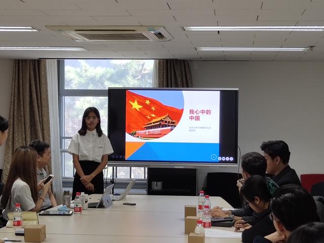 本次文化交流会共分为三大环节:参观校园,交流座谈和中国文化体验。吴杰伟教授介绍了北京大学柬埔寨研究中心的相关信息,对本次活动的目的及交流意义进行了阐述,之后进入中柬学生文化交流环节。首先,巩洁同学针对中国大众文化在柬埔寨的传播情况进行了简单的概要阐述;其次,柬学生会副主席韦速烈对中柬文化交流及本次活动的意义给予了充分的支持与肯定,并邀请了曾美玉、昆淑慧、常瑞、索克兰、霑志民、潘西西、罗雯珍等7位柬埔寨同学针对“中柬文化交流”议题进行了分享及讨论。分享的内容涵盖两国民间习俗差异、两国经济合作交流情况、两国影视文化情况及对两国高校企业之间加强联系的热切期望。最后,谢侃侃老师对交流会进行了总结发言,阐述了国内柬埔寨研究具有重要意义,并鼓励两国学生将此类活动长久持续地举办下去。