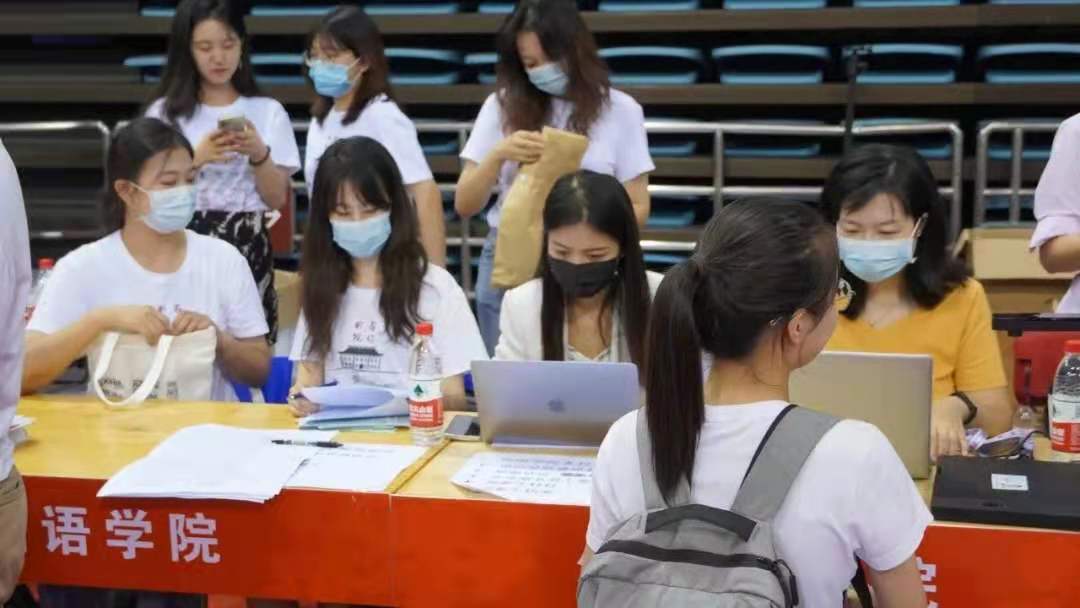 中午12时,已有过半新生完成了报到手续。晚上7时,邱德拔体育馆迎来了最后一位外院新生。因疫情防控要求,部分新同学未能入校报到,学院老师及辅导员持续关心学生情况。至此,外国语学院2021级本科新生完成报到,当日新生报到工作圆满完成。