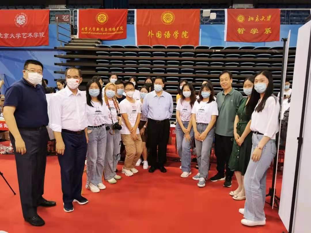 当天上午,校党委书记邱水平一行来到外国语学院迎新接待站关心迎新工作。邱水平在迎新展台前与师生亲切交谈,询问了迎新的情况,并同迎新接待站的师生们合影留念。郝平校长一行来到外国语学院迎新接待站关心新生报到情况。郝平亲切询问新生基本情况,鼓励新生尽快适应大学生活,努力学习。郝平还应志愿者的邀请,在外文楼的画板上画下一笔,送上对外院新生的祝福。