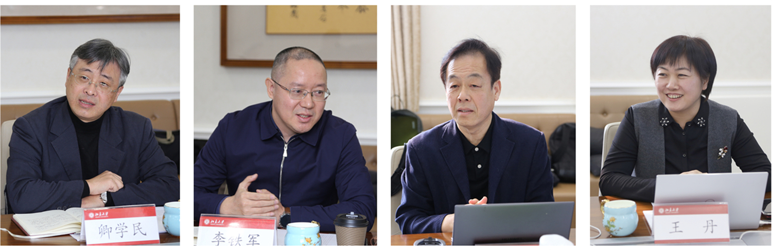 第六研究部副主任卿学民、李铁军也就合作基地建设提出期待。外国语学院副院长付志明、王丹分别介绍本科生、研究生人才培养情况与合作想法。
