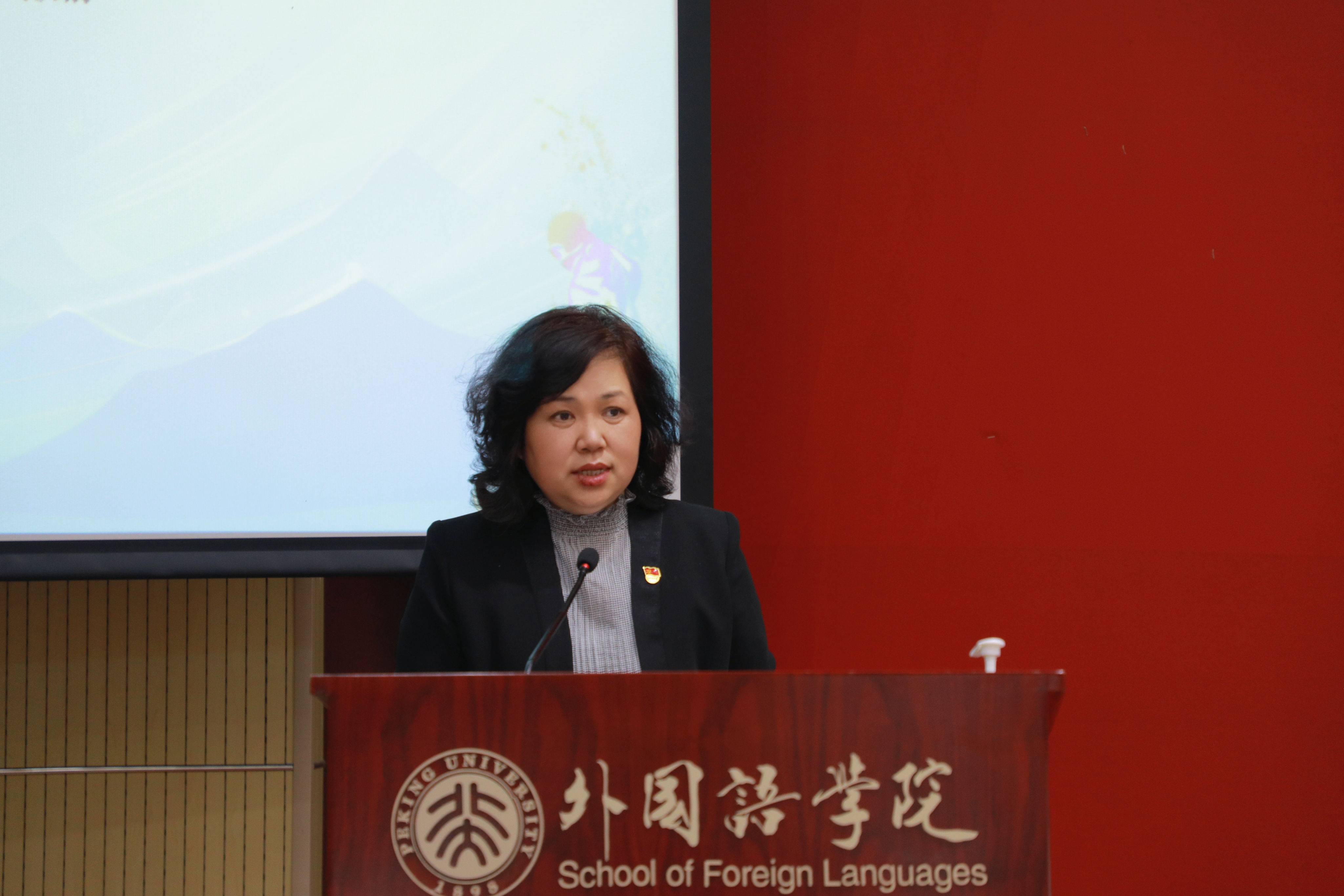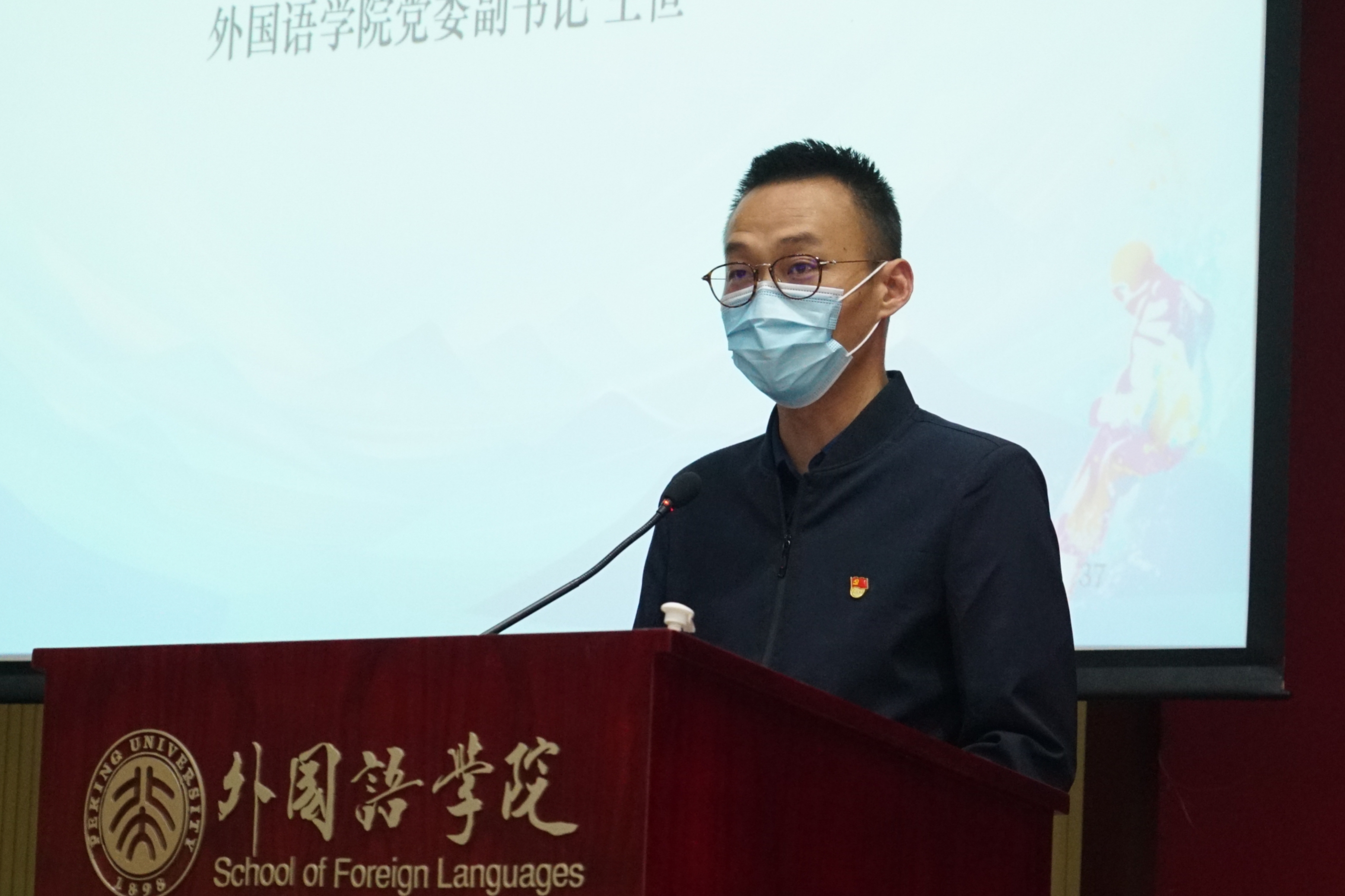 外国语学院党委副书记王恒宣读表彰决定,鼓励号召广大青年向北京2022年冬奥会和冬残奥会志愿者群体学习、向奥林匹克精神学习。