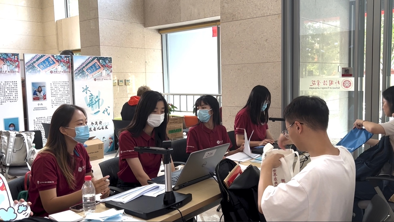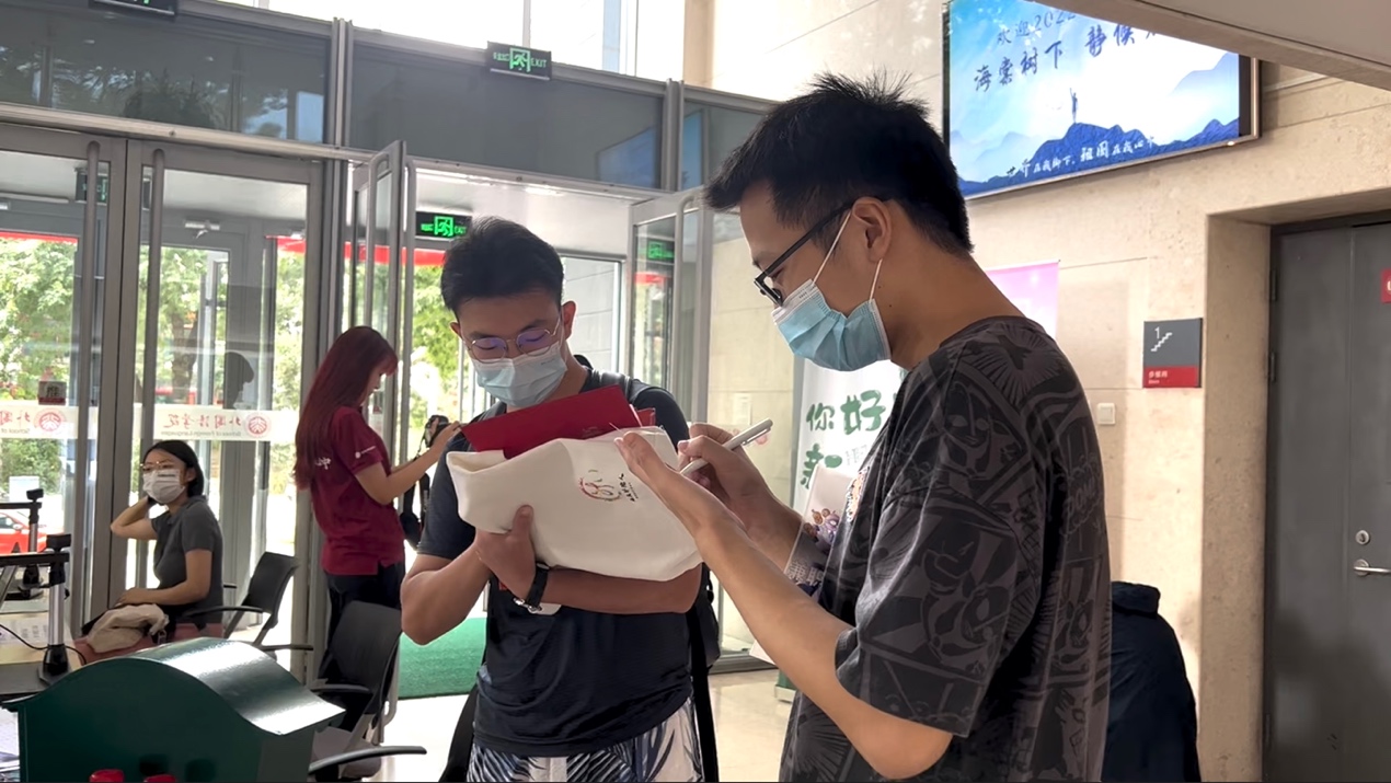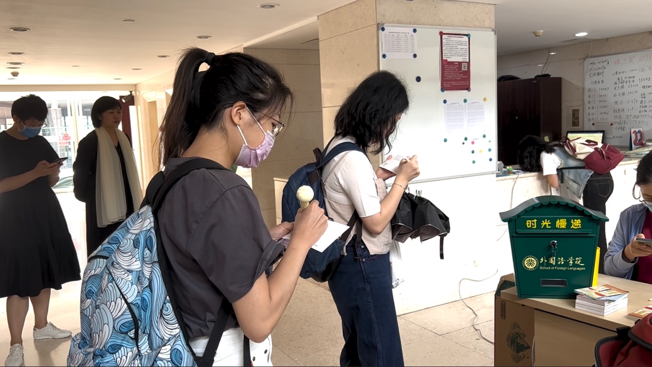 报到手续完成之后,新同学们依次参与时光慢递和饭盒抽奖活动,他们在明信片上书写在燕园求知之旅的美好目标,在抽奖过程中感受学院对同学们的关心关怀。最后,新生们在志愿者的引导下合影留念。新同学们来自五湖四海,又在外国语学院相交相连,未来的日子里,他们也将共同度过一段熠熠生辉的时光,协力书写对自己和时代的无悔答卷。