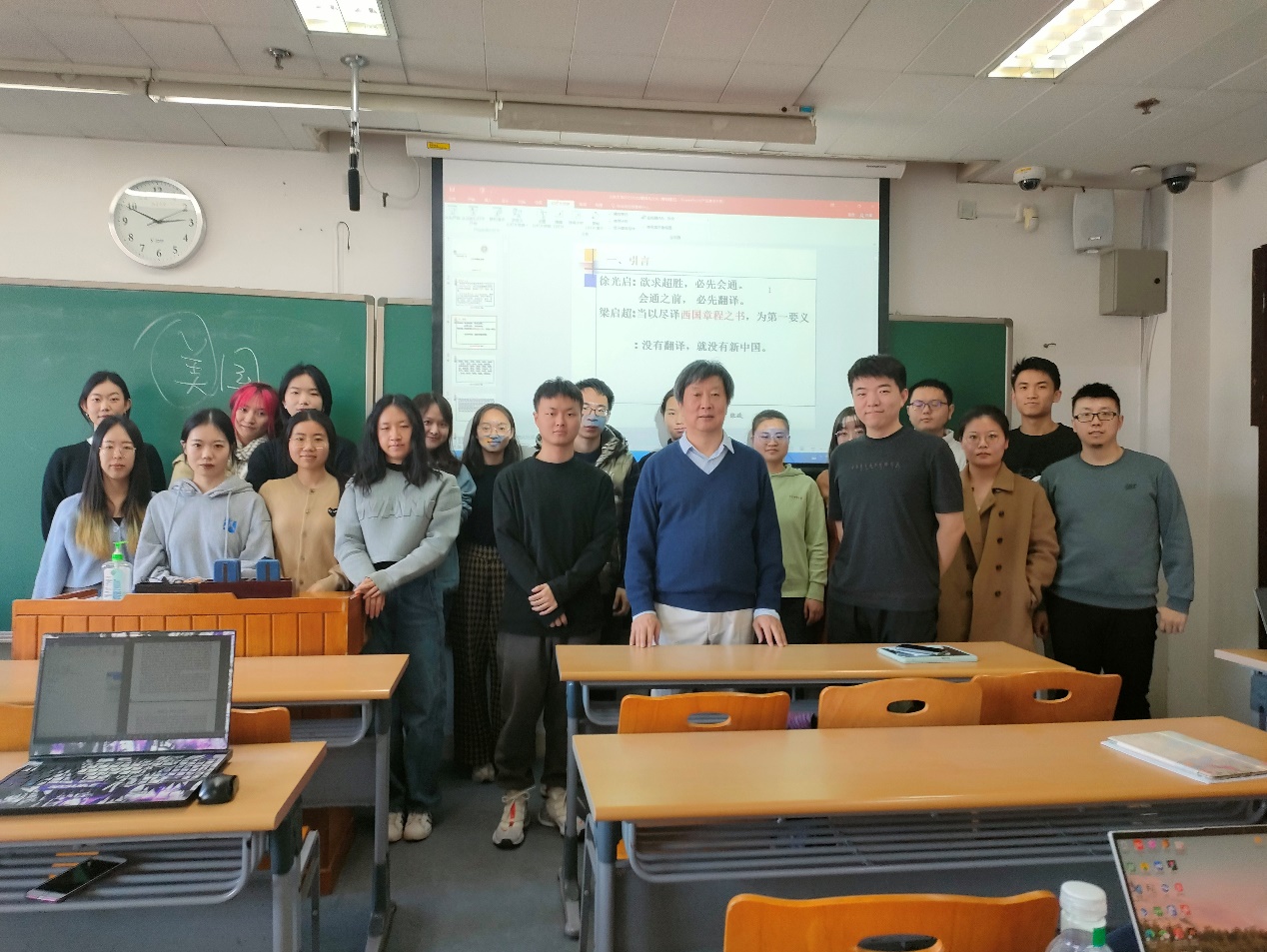 张政教授毕业于北京大学英语语言文学系,是中国翻译协会翻译理论与教学指导委员会委员、全国翻译专业资格考试(CATTI)专家委员、中西比较文化协会秘书长。在此次讲座中,张教授带领同学们回顾了历史上各个时期的翻译形态,用生动的讲解梳理了东汉的佛经翻译、明末清初的科技翻译、清末和民初的社会科学与文学的翻译,以及新中国成立后的翻译。张教授阐释了翻译对于文化的意义和影响,以及文化对于翻译的制约。他指出翻译是思想史、文化史的体现,我们通过对历史上翻译活动的考察,可以研究不同文化接触中的种种现象,包括政治、经济、思想、社会、语言、文学的变化,从而探究思想文化的发展。张教授还以近代马克思主义经典著作的翻译为例,强调了翻译在民族思想启蒙和爱国救亡运动中发挥的重要作用。